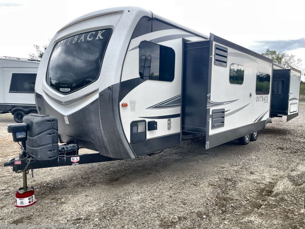Come enjoy camping in your very own triple slide out double entry door travel trailer. This 332FK Outback by Keystone RV features a PanaView window in front and plenty of room to entertain a few guests while you are away from home. This travel trailer is ready to set out to new destinations, are you?