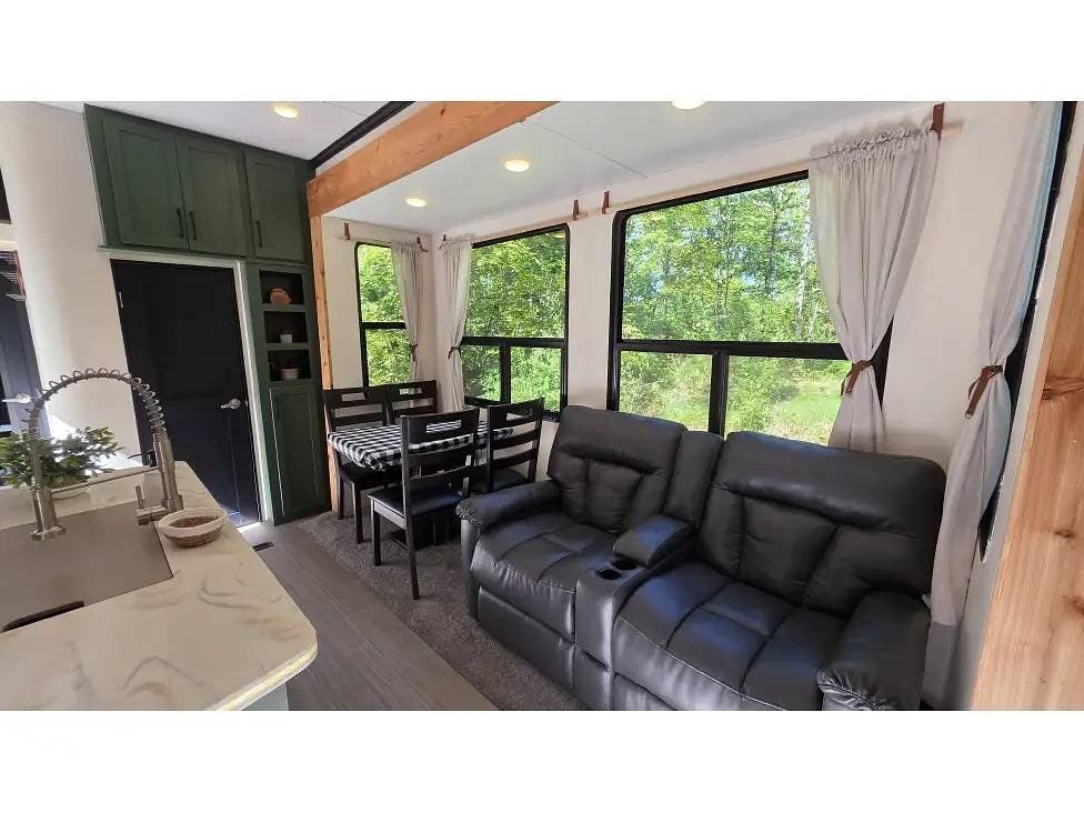 Designed for travel and comfort, this toy hauler has been fully refreshed inside to feel more like a home on wheels, perfect for full-time living, weekend escapes, or family road trips.