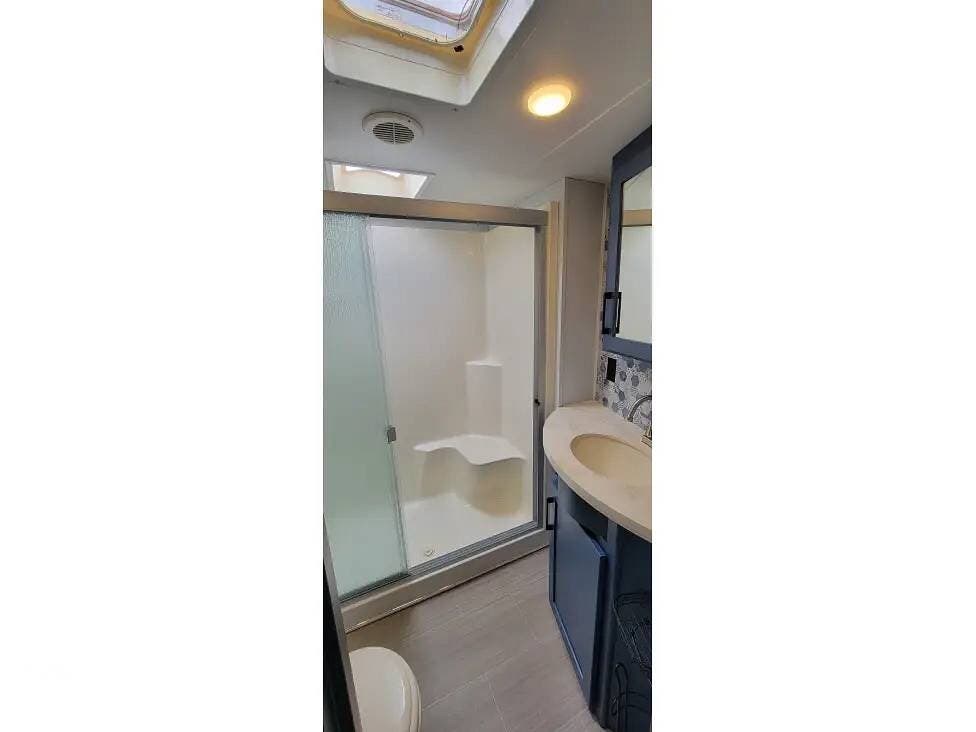 The large walk-through bathroom features a walk-in shower, making it easy to refresh after a day of excitement. You also have a half bath in the garage area.