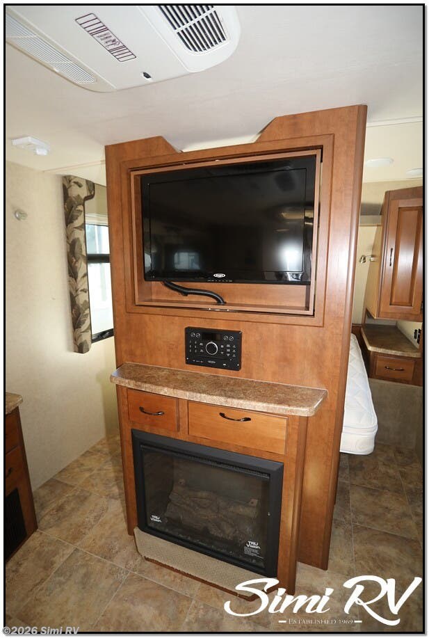 The all-new 2155 features a dual-slide, island floor plan that provides room for doing what you love to do most, from entertaining to just chillin! Food prep is a breeze with abundant counter space. The available 32 inch LED TV and standard blue-tooth audio system with app control, combine to make your favorite program come alive! The available fireplace... yes, we said FIREPLACE! creates a warm and cozy retreat you may never want to leave!
