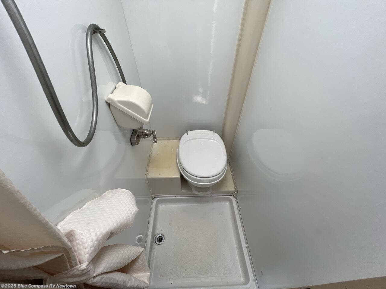 Step inside the rear entry door and find a convenient wet bath to your right including a shower and toilet.