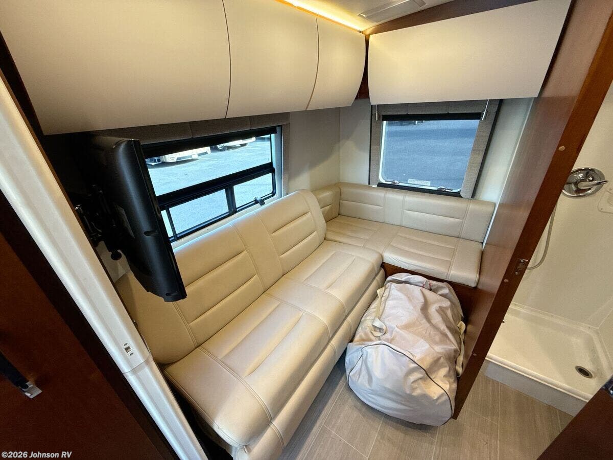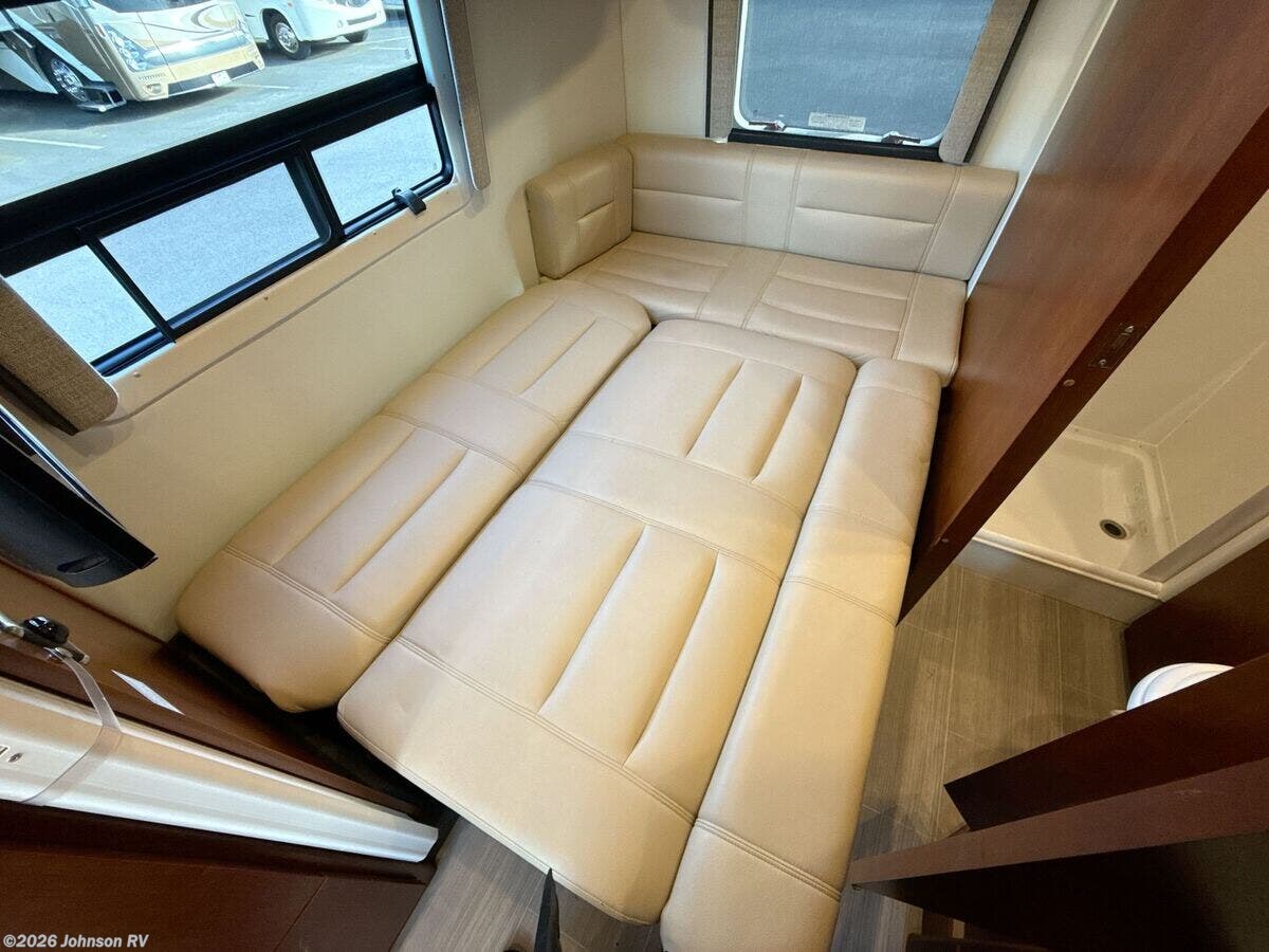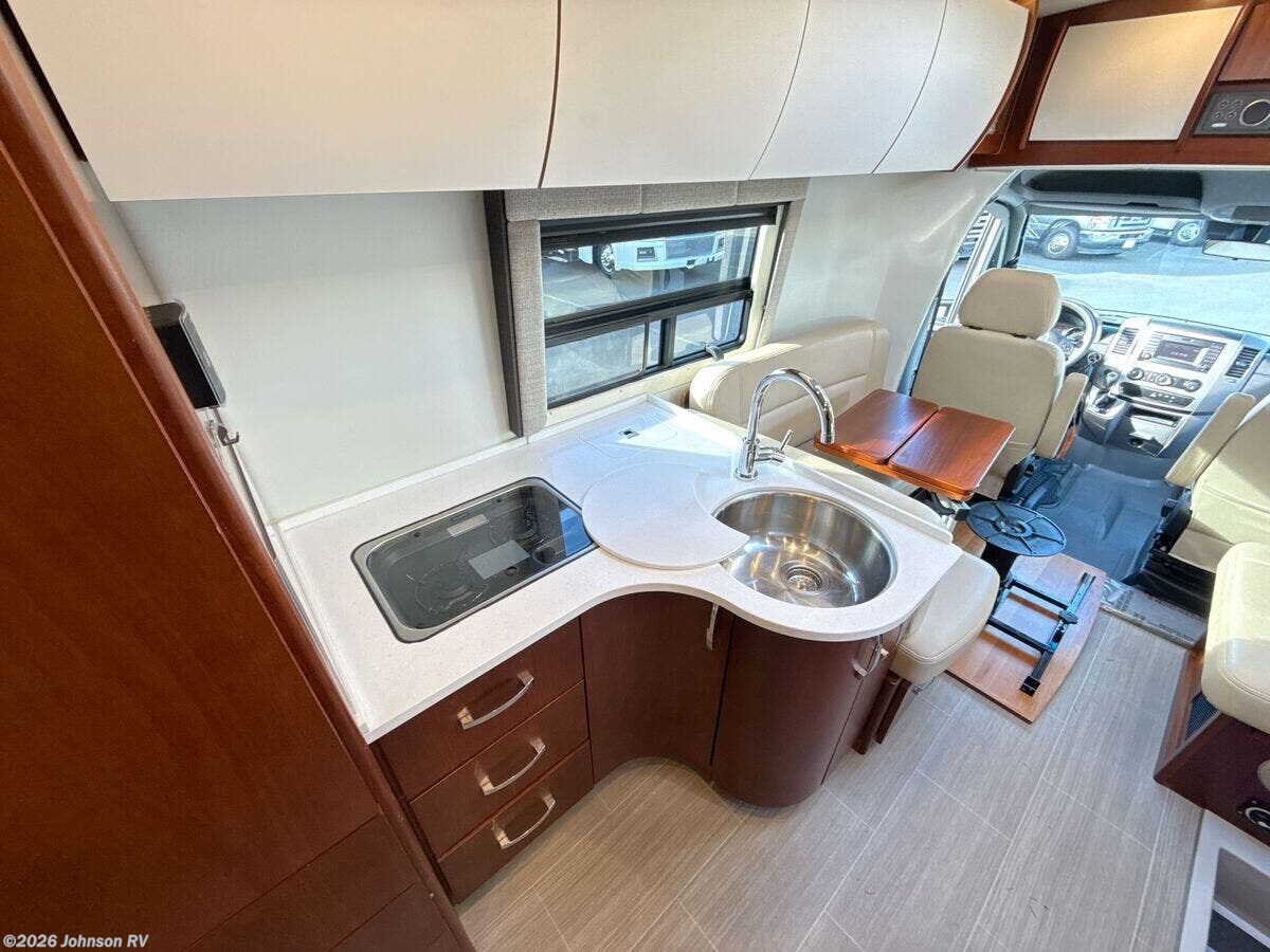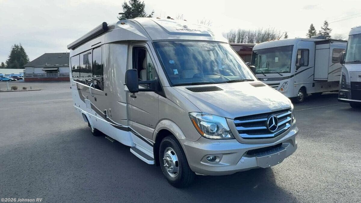 The 2017 Leisure Travel Serenity S24CB is a luxurious Class B RV built on a sturdy Mercedes Benz Sprinter 3500 chassis. With its sleek full-body paint and clearcoat finish, this RV is designed for both style and performance on the road. Under the hood, the Serenity is equipped with a robust 3L V6 BlueTEC Turbo Diesel Engine, providing 188 HP and 325 ft-lb of torque, paired with a smooth MB 5-Speed Automatic transmission. For added safety, it features advanced Mercedes Benz safety systems including Collision Prevention Assist, Crosswind Assist, Lane Keeping Assist, and Rain-Sensing Wipers. The exterior of the Serenity offers practical features: - Fog Lamps for better visibility - Standard Steel Wheels with dual rear wheels and wheel simulators - 5000# Receiver for towing Inside the cab, you will find: - MB Ultraleather Swivel Seats - Keyless Entry and Power Door Locks - Power Windows and Heated Remote Side-Mirrors - Cruise Control and Tilt Telescopic Steering Wheel - Courtesy lights and a Cab Window Privacy Drape - Removable Carpet Floor Mats The living space is both comfortable and functional: - Legless Power Awning with LED lighting - Dimmable LED Aisle and Accent Lighting - Spacious interior with a 75-inch high ceiling and padded vinyl headliner - Curved wood cabinetry with soft-close hinges and full-extension drawers - Frameless Tinted Awning Windows with Day/Night Shades - Entry features such as a retractable power entry step and a contoured entry door For dining and cooking: - Ultraleather Convertible Dinette with a Swing Away Folding Dining Table - Solid Surface Countertops and Stainless Steel Backsplash - Undermount Stainless Steel Sink with a 6.7cf 3-Way Refrigerator - Convection Microwave, Cooktop with Glass Cover, and Outdoor Cooking LP Outlet Modern electronics include: - Systems Monitor Panel and USB Outlets - Winegard ConnecT 2.0 Antenna for WiFi and 4G LTE Extender - Satellite Dish Pre-Wiring and Cable TV Hookup - Home Entertainment Stereo with Bluetooth and a 24-inch Smart LED TV Sleeping arrangements encompass: - A 54x80 bed with a residential quality mattress - Decorative bedspread and easy access storage The bathroom is equipped with: - A Porcelain Toilet, Stainless Steel Sink, and a Shower - Linen Storage and Medicine Cabinet - Power Roof Vent Exhaust Mechanically, the RV includes: - Two 6v Coach Batteries with a Battery Disconnect Switch - Low Profile Ducted AC and a 15k AC Heat Pump Unit - 16k Ducted Furnace and Truma AquaGo Comfort Plus System Finally, the coach build features: - A steel-framed insulated floor and composite fiberglass exterior - Domed insulated roof for better climate control - Contoured aluminum cargo doors with a rear storage compartment This pre-owned 2017 Leisure Travel Serenity S24CB presents a perfect blend of luxury, safety, and convenience for those seeking comfortable travels. Plan your adventures with confidence, knowing this RV is built to deliver both form and function. ???