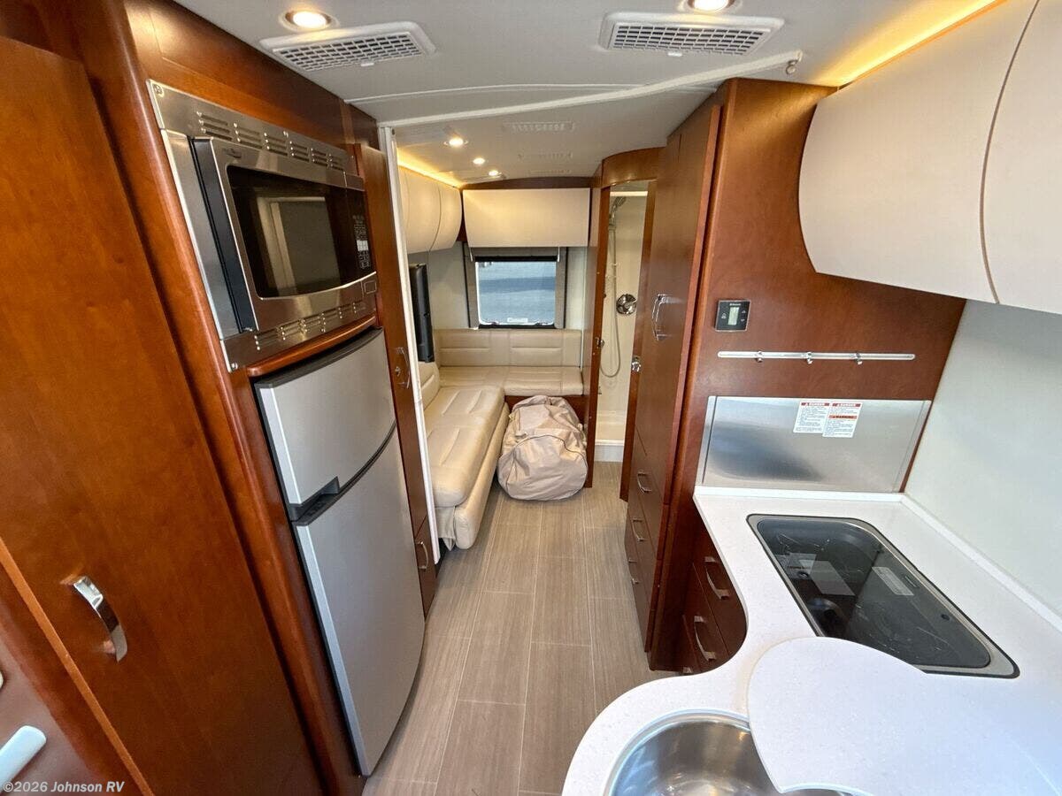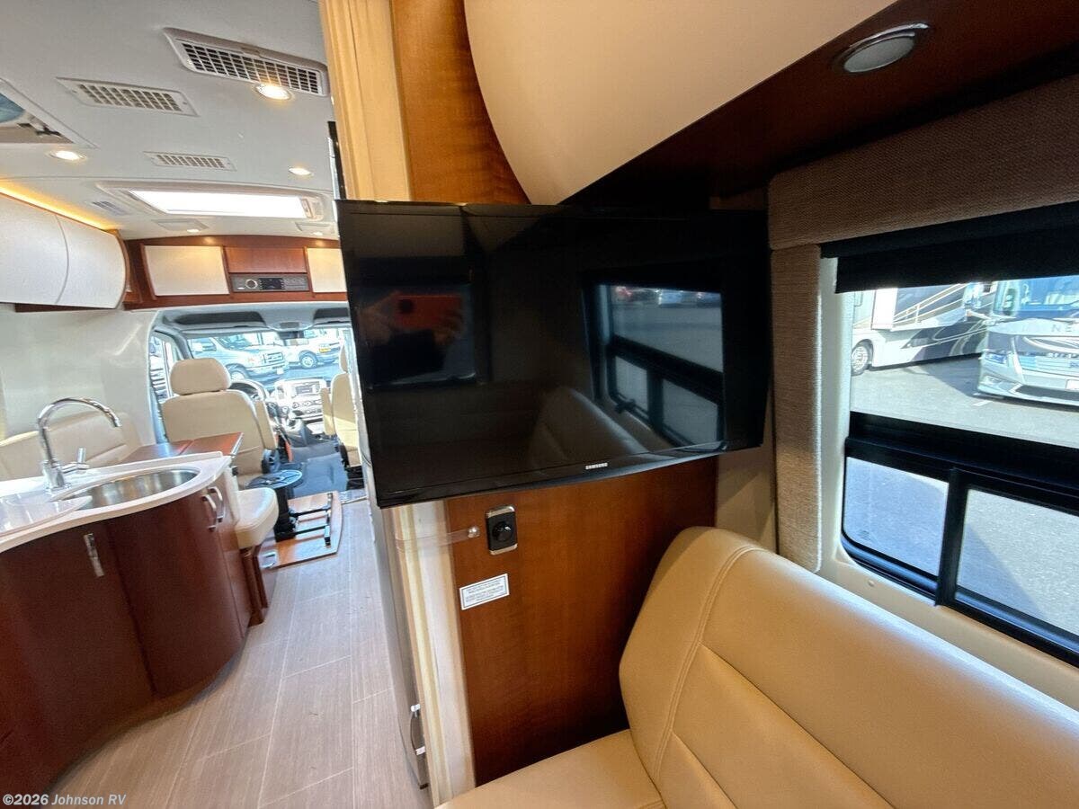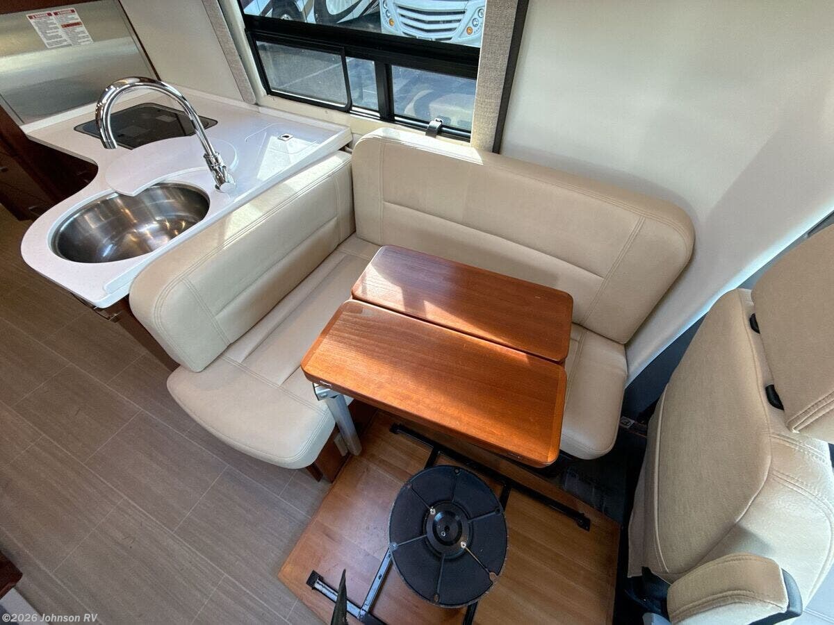 The 2017 Leisure Travel Serenity S24CB is a luxurious Class B RV built on a sturdy Mercedes Benz Sprinter 3500 chassis. With its sleek full-body paint and clearcoat finish, this RV is designed for both style and performance on the road. Under the hood, the Serenity is equipped with a robust 3L V6 BlueTEC Turbo Diesel Engine, providing 188 HP and 325 ft-lb of torque, paired with a smooth MB 5-Speed Automatic transmission. For added safety, it features advanced Mercedes Benz safety systems including Collision Prevention Assist, Crosswind Assist, Lane Keeping Assist, and Rain-Sensing Wipers. The exterior of the Serenity offers practical features: - Fog Lamps for better visibility - Standard Steel Wheels with dual rear wheels and wheel simulators - 5000# Receiver for towing Inside the cab, you will find: - MB Ultraleather Swivel Seats - Keyless Entry and Power Door Locks - Power Windows and Heated Remote Side-Mirrors - Cruise Control and Tilt Telescopic Steering Wheel - Courtesy lights and a Cab Window Privacy Drape - Removable Carpet Floor Mats The living space is both comfortable and functional: - Legless Power Awning with LED lighting - Dimmable LED Aisle and Accent Lighting - Spacious interior with a 75-inch high ceiling and padded vinyl headliner - Curved wood cabinetry with soft-close hinges and full-extension drawers - Frameless Tinted Awning Windows with Day/Night Shades - Entry features such as a retractable power entry step and a contoured entry door For dining and cooking: - Ultraleather Convertible Dinette with a Swing Away Folding Dining Table - Solid Surface Countertops and Stainless Steel Backsplash - Undermount Stainless Steel Sink with a 6.7cf 3-Way Refrigerator - Convection Microwave, Cooktop with Glass Cover, and Outdoor Cooking LP Outlet Modern electronics include: - Systems Monitor Panel and USB Outlets - Winegard ConnecT 2.0 Antenna for WiFi and 4G LTE Extender - Satellite Dish Pre-Wiring and Cable TV Hookup - Home Entertainment Stereo with Bluetooth and a 24-inch Smart LED TV Sleeping arrangements encompass: - A 54x80 bed with a residential quality mattress - Decorative bedspread and easy access storage The bathroom is equipped with: - A Porcelain Toilet, Stainless Steel Sink, and a Shower - Linen Storage and Medicine Cabinet - Power Roof Vent Exhaust Mechanically, the RV includes: - Two 6v Coach Batteries with a Battery Disconnect Switch - Low Profile Ducted AC and a 15k AC Heat Pump Unit - 16k Ducted Furnace and Truma AquaGo Comfort Plus System Finally, the coach build features: - A steel-framed insulated floor and composite fiberglass exterior - Domed insulated roof for better climate control - Contoured aluminum cargo doors with a rear storage compartment This pre-owned 2017 Leisure Travel Serenity S24CB presents a perfect blend of luxury, safety, and convenience for those seeking comfortable travels. Plan your adventures with confidence, knowing this RV is built to deliver both form and function. ???