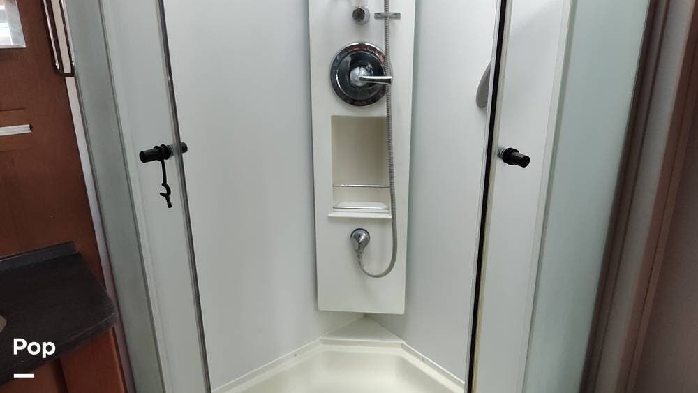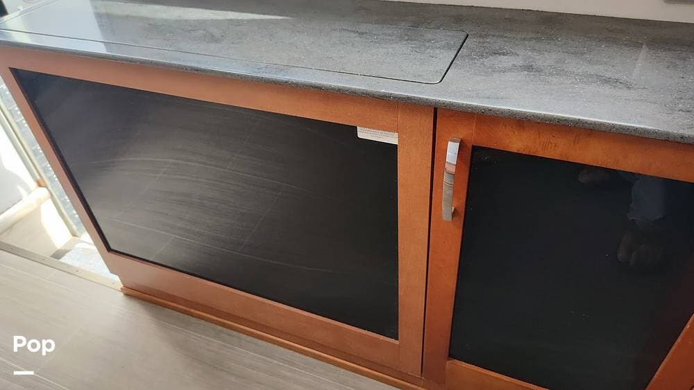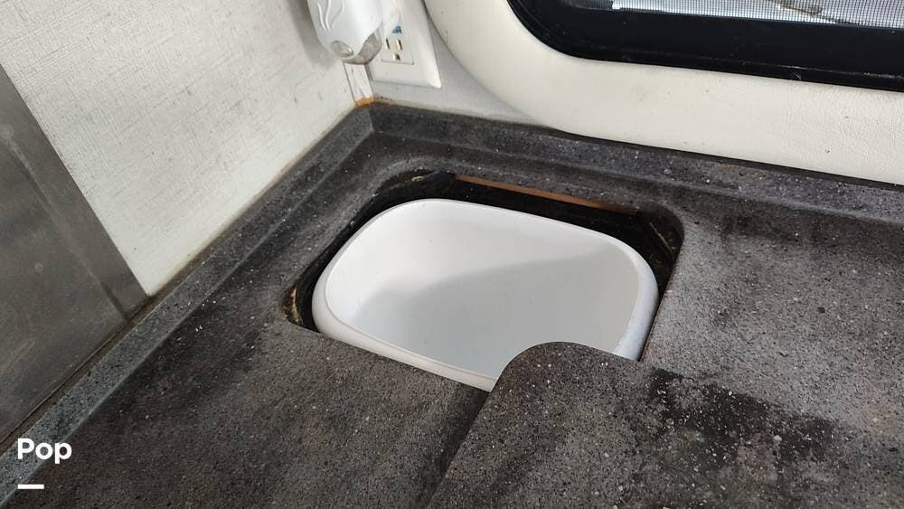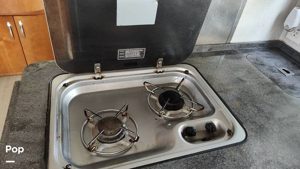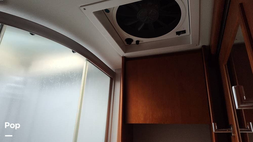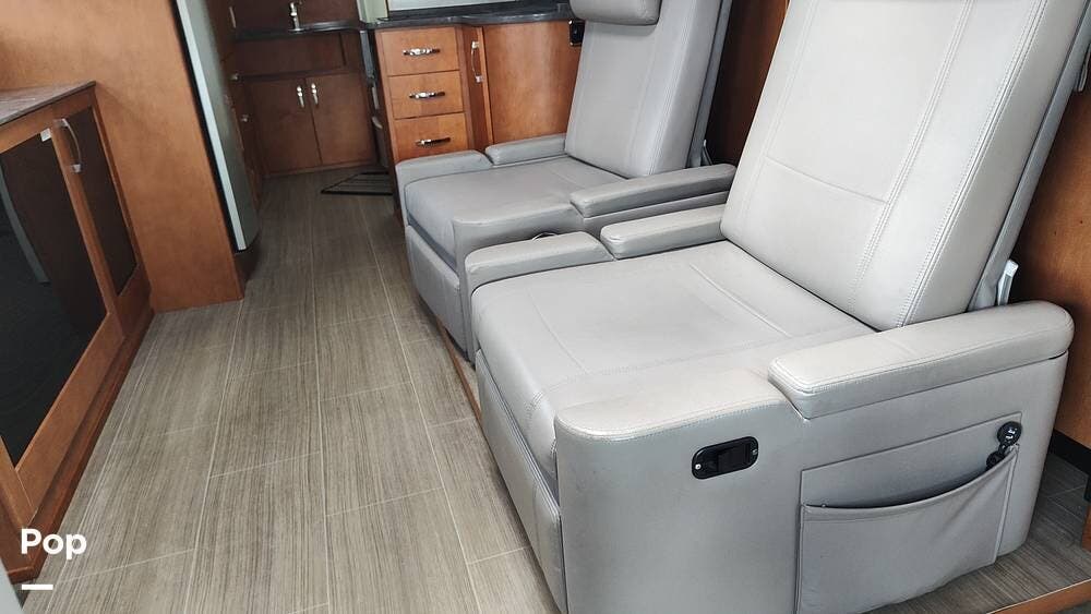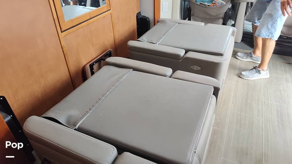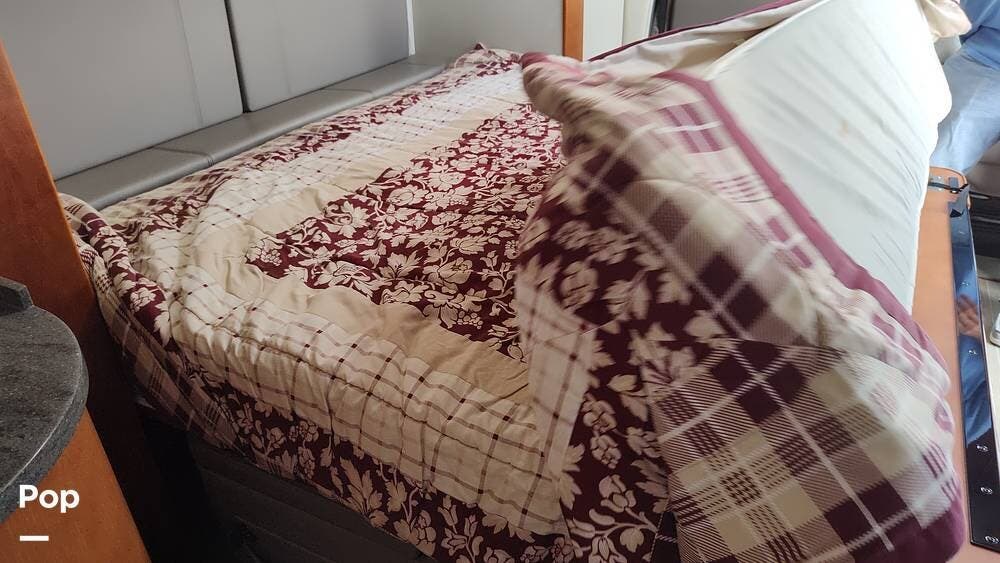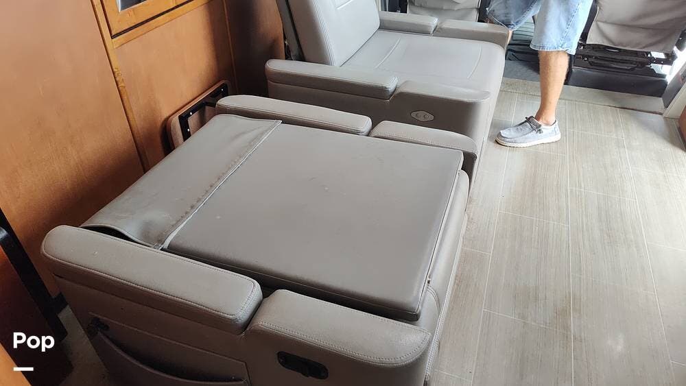 This RV features a spacious interior with ultraleather seating and a very comfortable Murphy Bed.