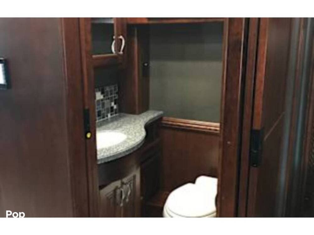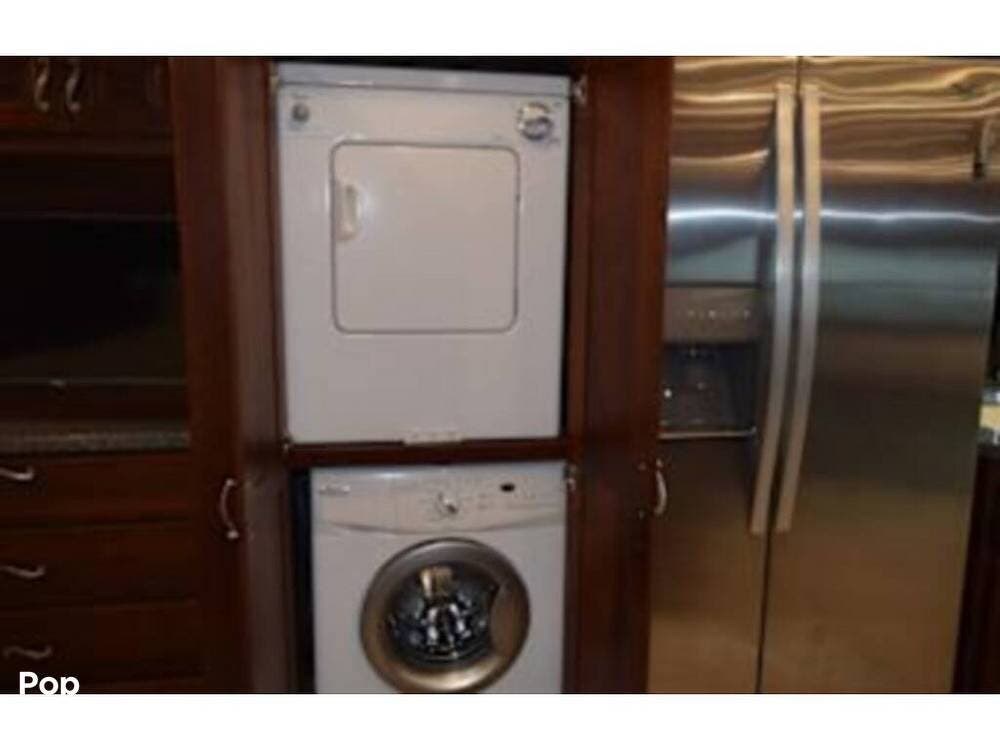 A midship half bath sits across from washer/dryer prep, leading to the rear master suite with a king bed slide, large wardrobe, and private full bath.