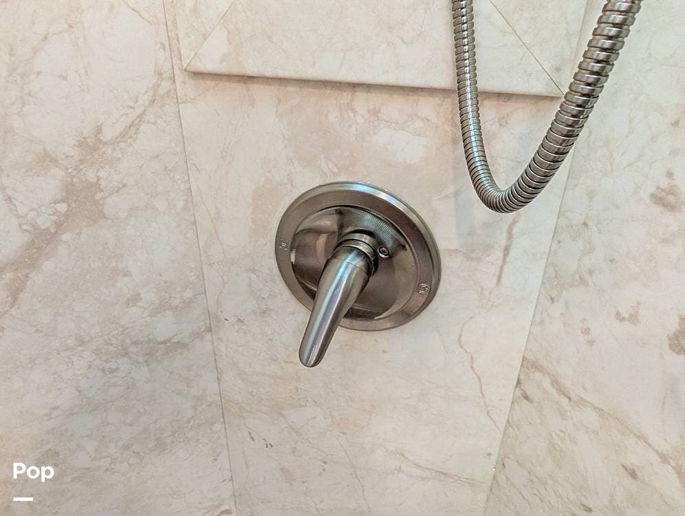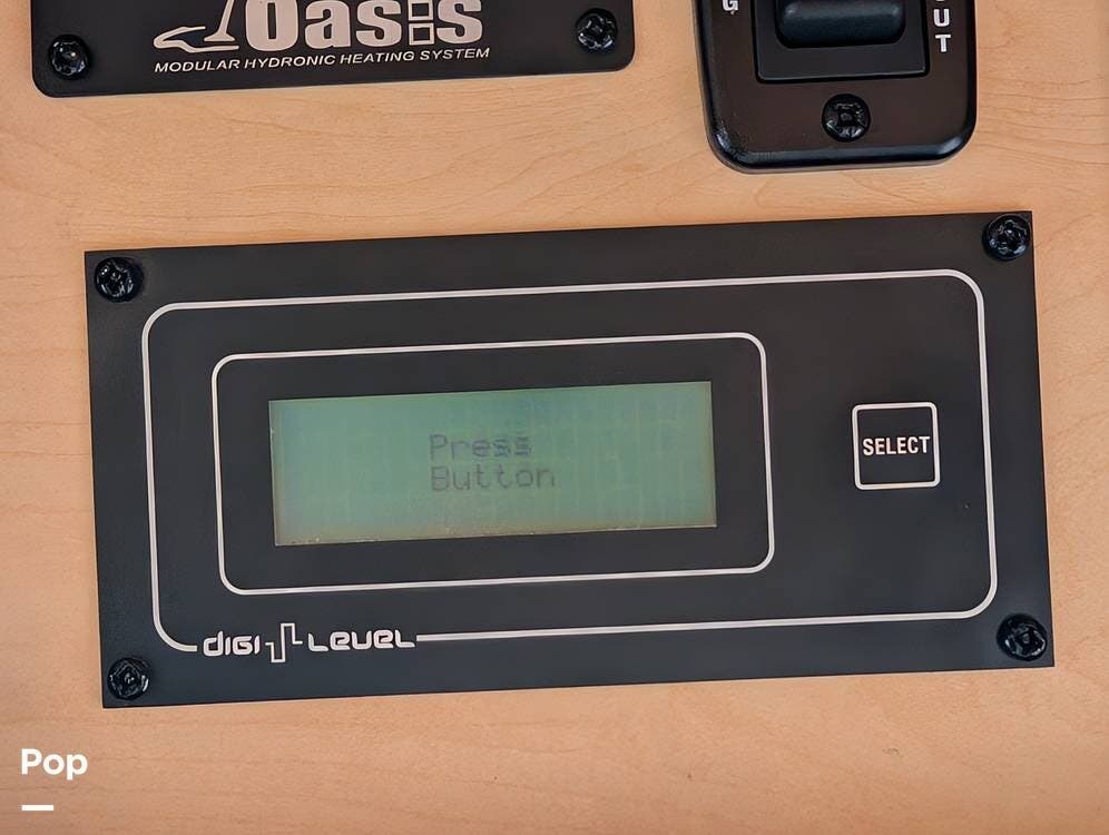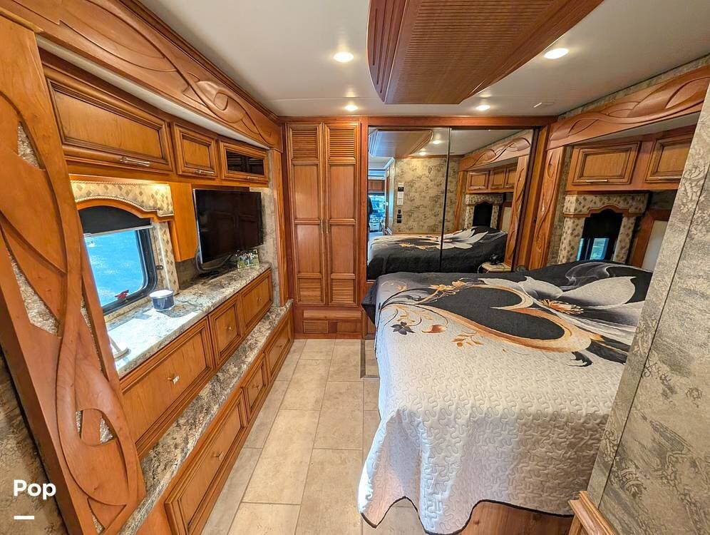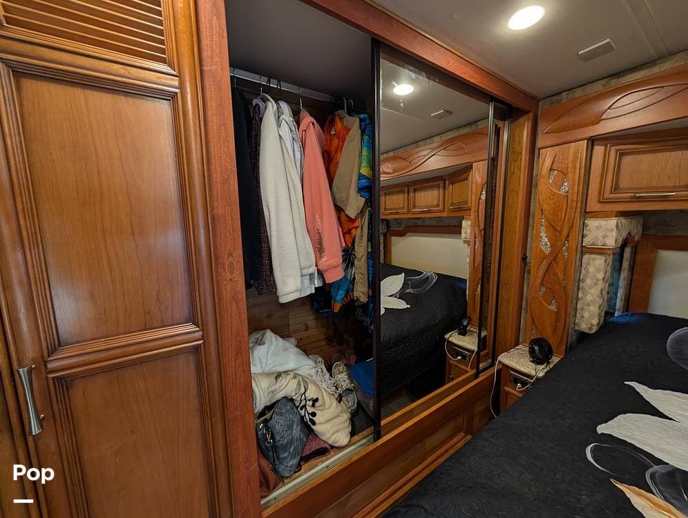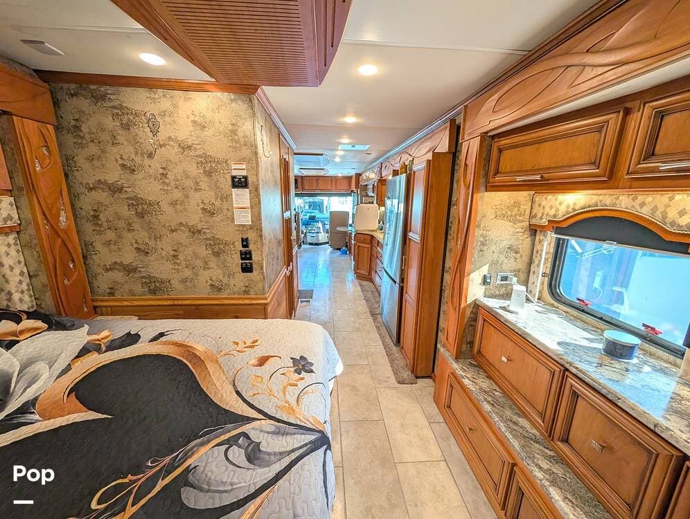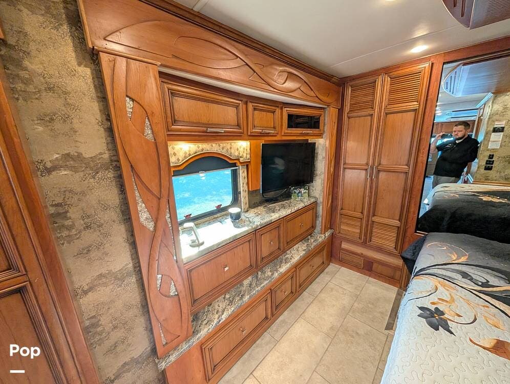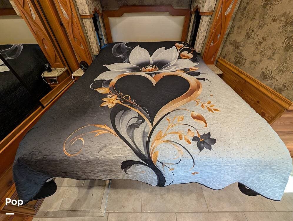The master suite is a private and comfortable retreat, featuring a queen bed, a huge closet, ample drawer space, and its own television. The bathroom is well appointed and supported by the Oasis hydronic water and coach heating system, which provides quiet, efficient heat and endless hot water for added luxury and comfort in all seasons. A washer and dryer are also included, making this coach fully self-sufficient for long-term travel.