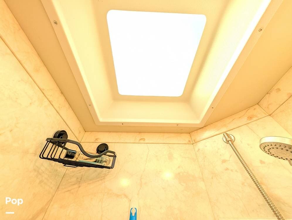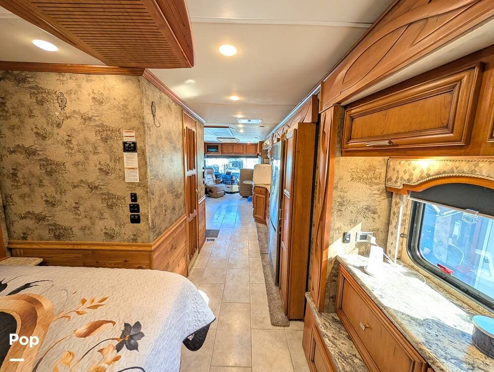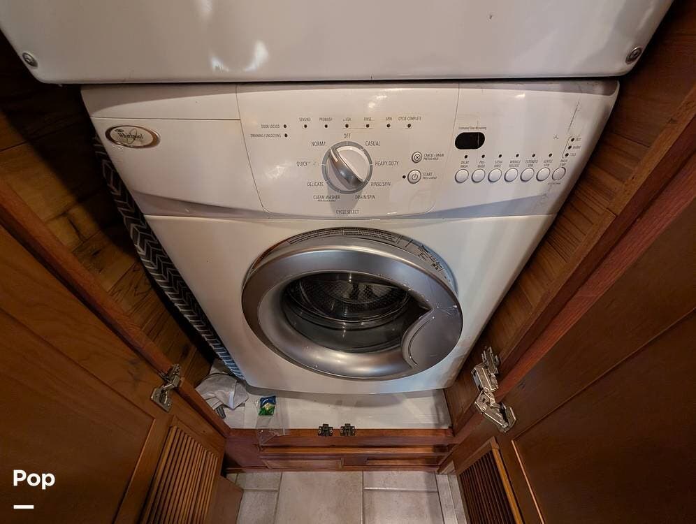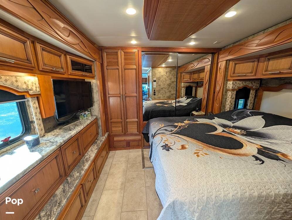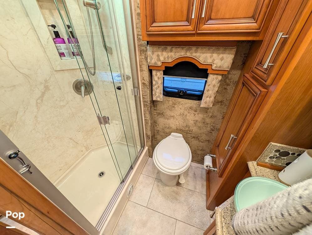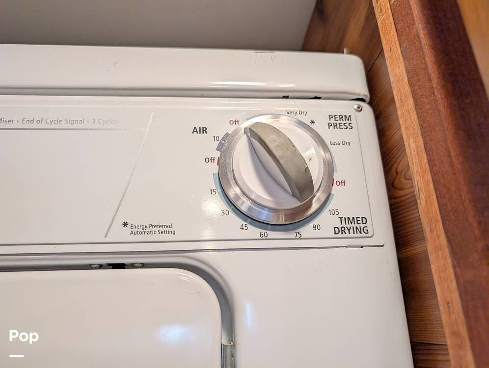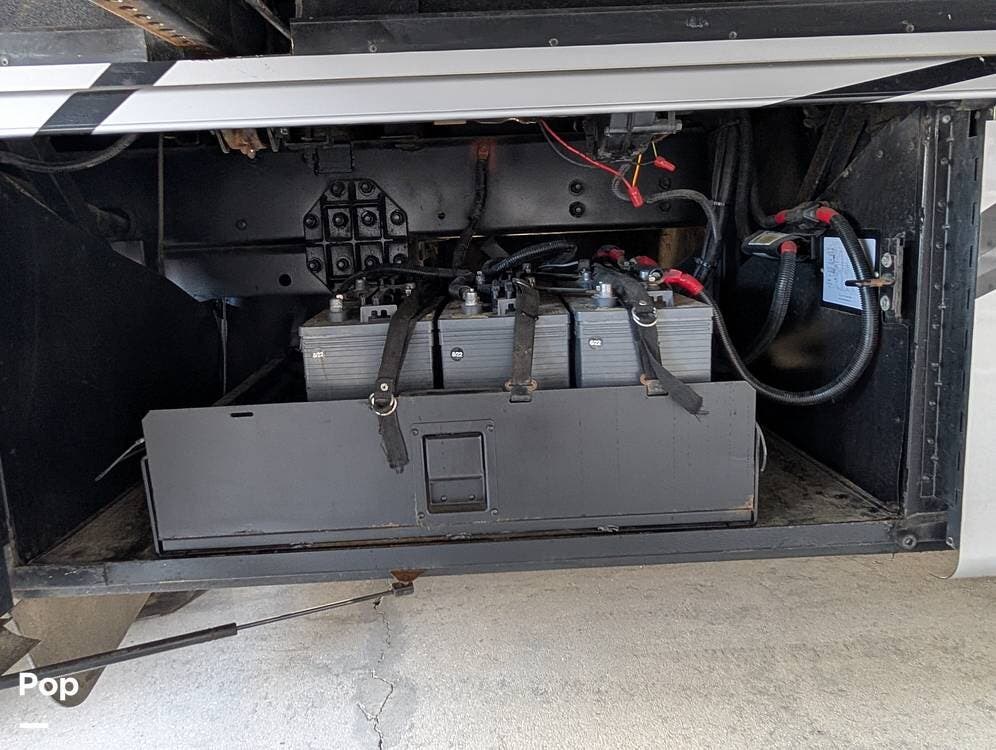 The master suite is a private and comfortable retreat, featuring a queen bed, a huge closet, ample drawer space, and its own television. The bathroom is well appointed and supported by the Oasis hydronic water and coach heating system, which provides quiet, efficient heat and endless hot water for added luxury and comfort in all seasons. A washer and dryer are also included, making this coach fully self-sufficient for long-term travel.