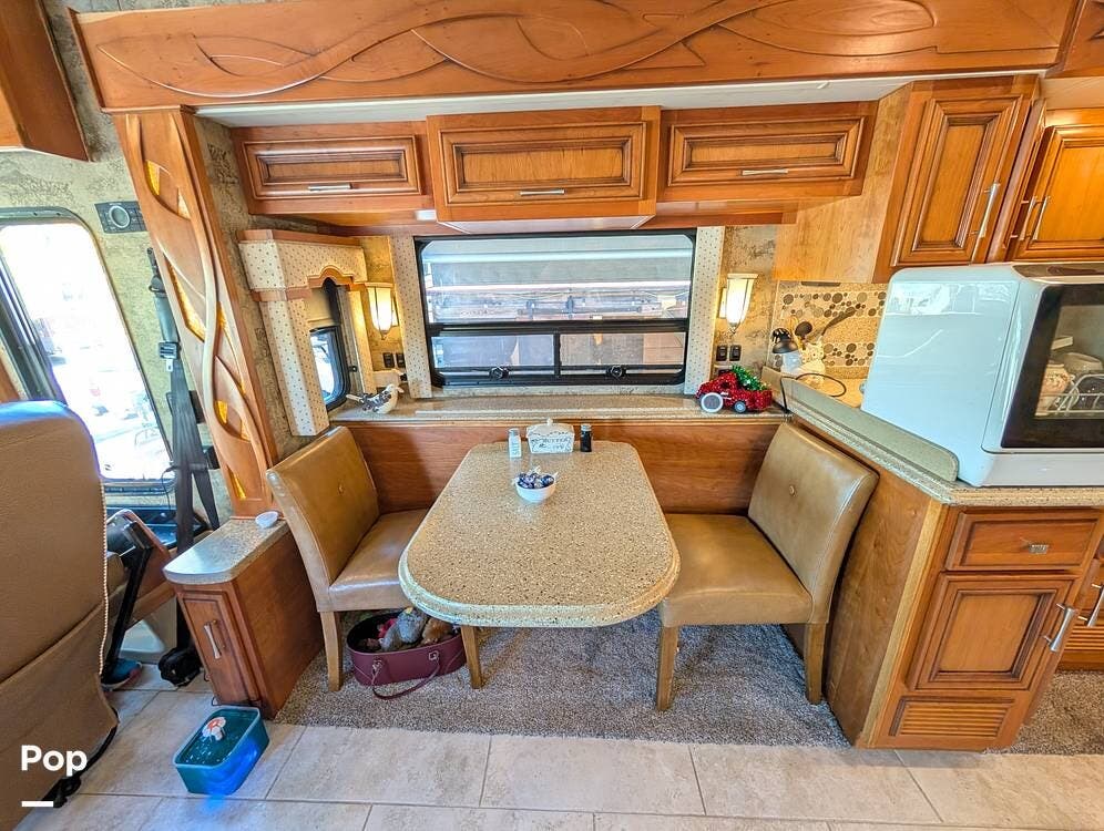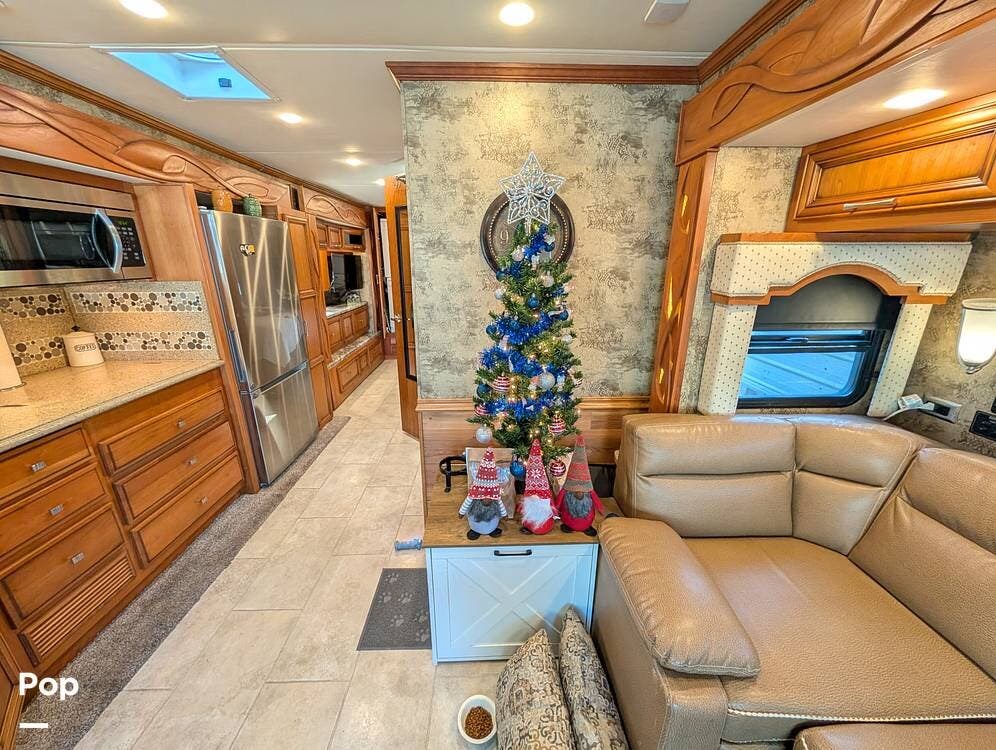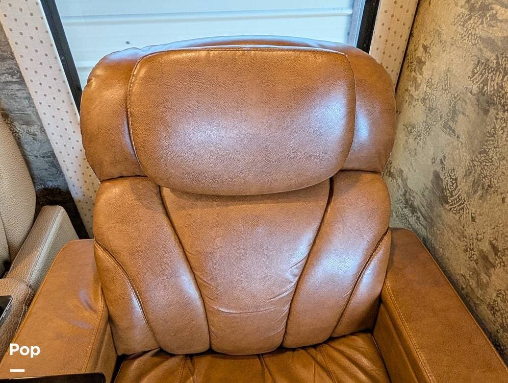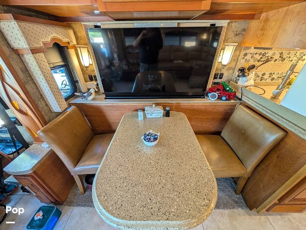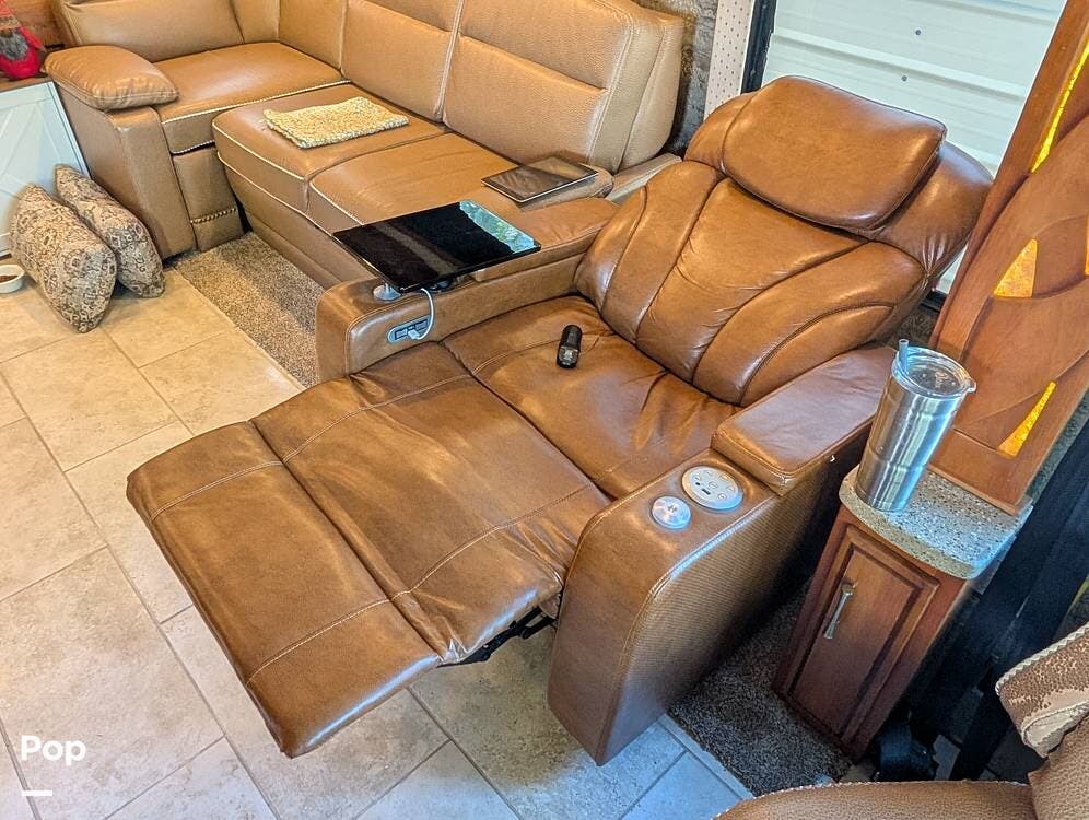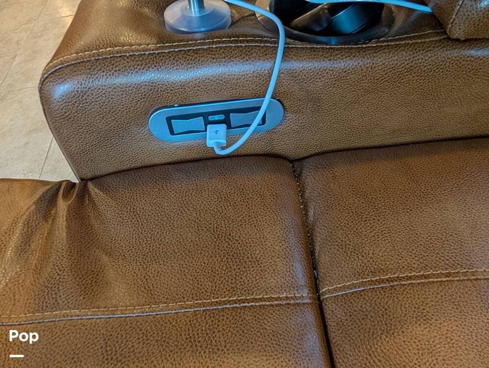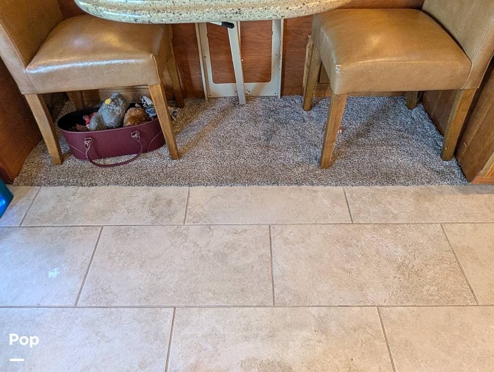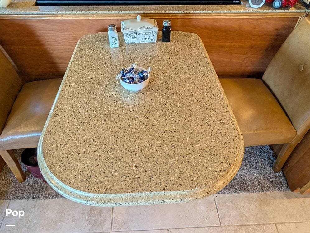 Step inside and you are immediately welcomed by gorgeous maple woodwork throughout the coach, showcasing Newmar's legendary build quality and attention to detail. Elegant tile floors add durability and a high-end residential feel, while large windows fill the space with natural light. The living area is designed for both relaxation and entertaining, featuring a comfortable sectional sofa paired with a separate oversized power recliner. The freestanding dinette provides a flexible dining or workspace option and includes a clever "Televator" that rises smoothly for easy viewing and tucks away when not in use.