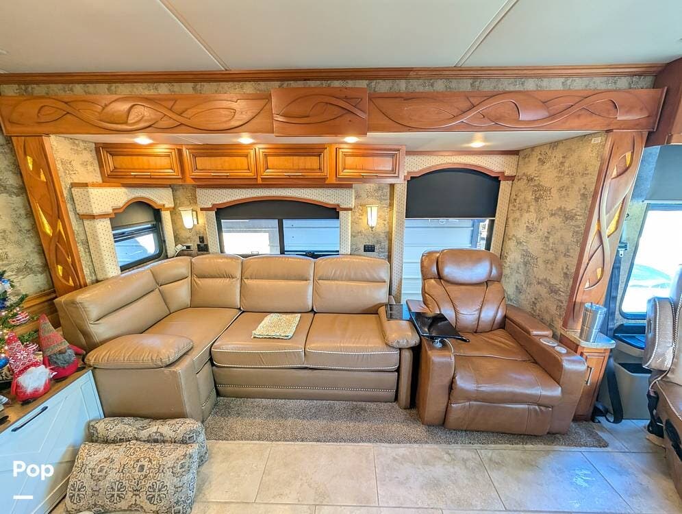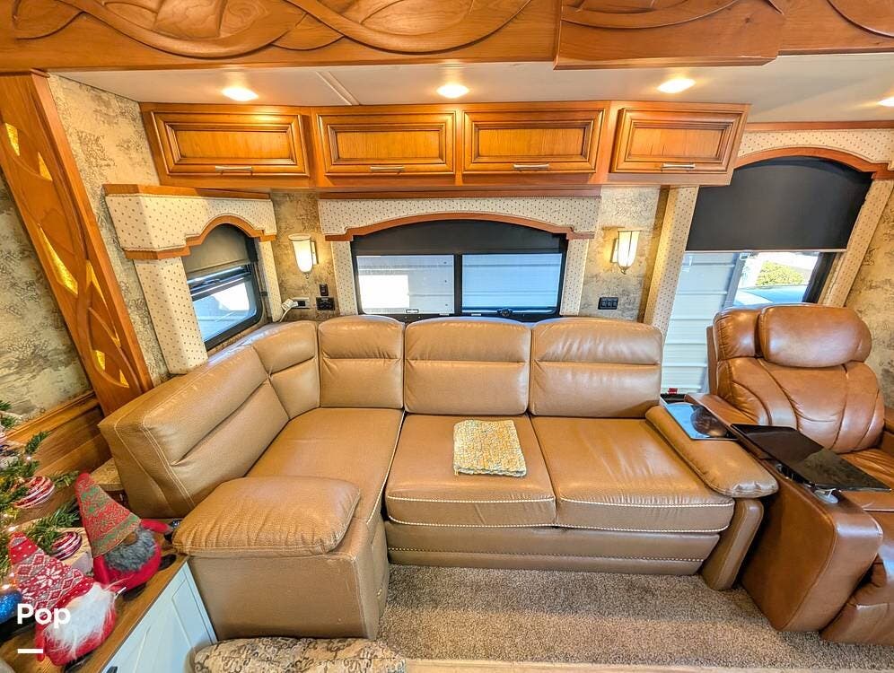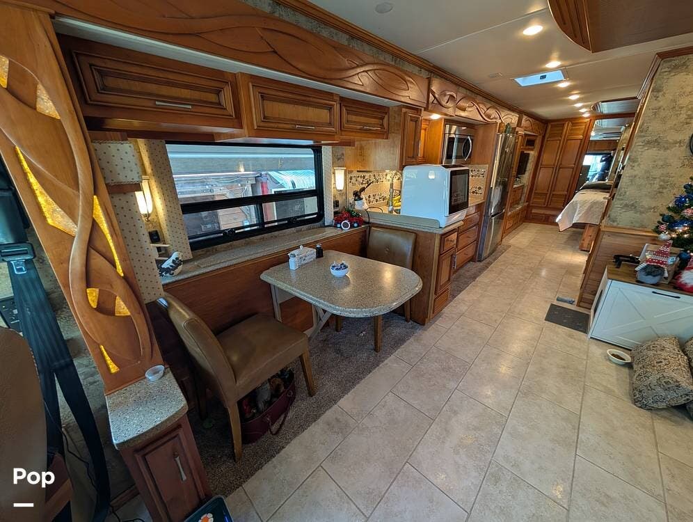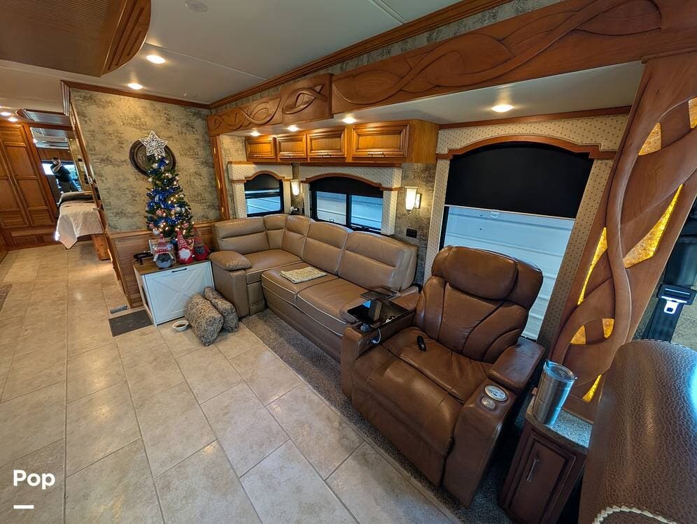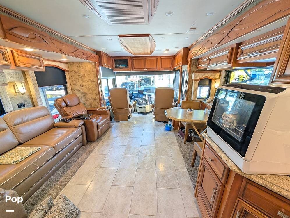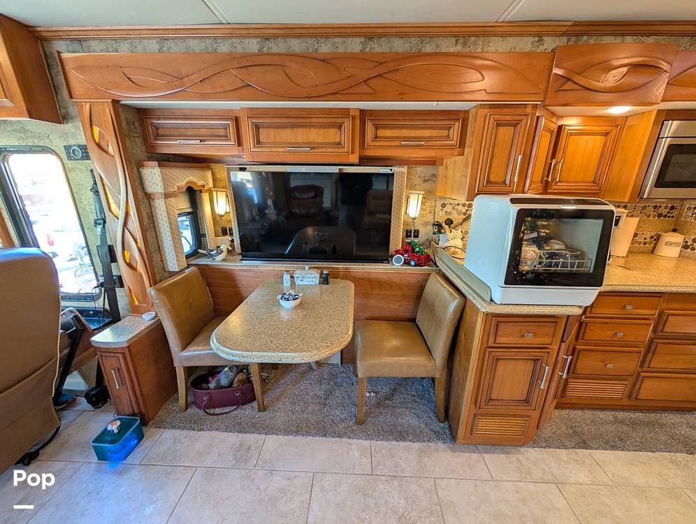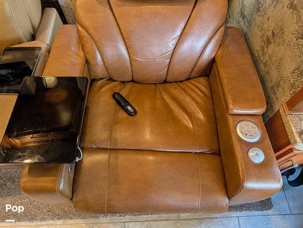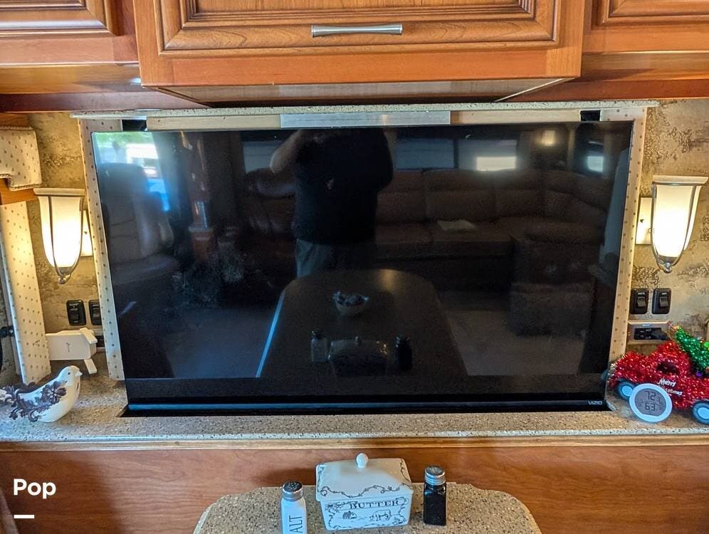 Step inside and you are immediately welcomed by gorgeous maple woodwork throughout the coach, showcasing Newmar's legendary build quality and attention to detail. Elegant tile floors add durability and a high-end residential feel, while large windows fill the space with natural light. The living area is designed for both relaxation and entertaining, featuring a comfortable sectional sofa paired with a separate oversized power recliner. The freestanding dinette provides a flexible dining or workspace option and includes a clever "Televator" that rises smoothly for easy viewing and tucks away when not in use.