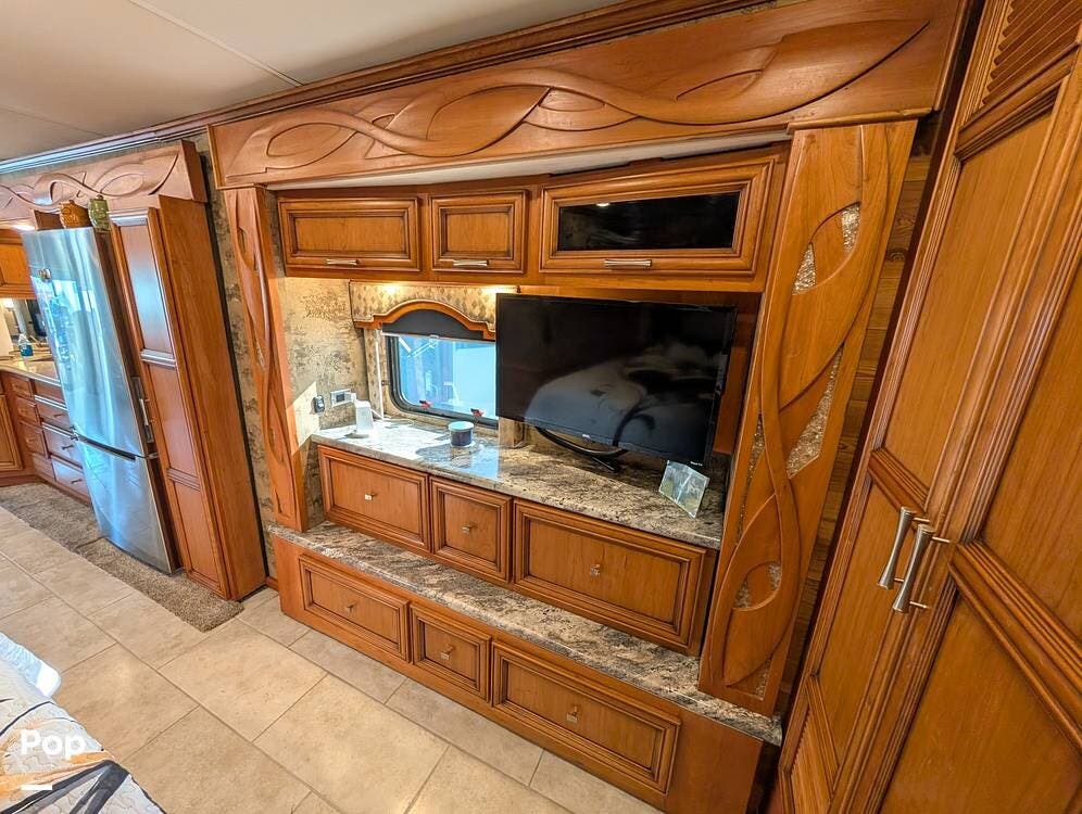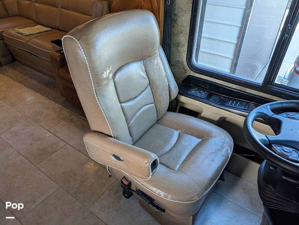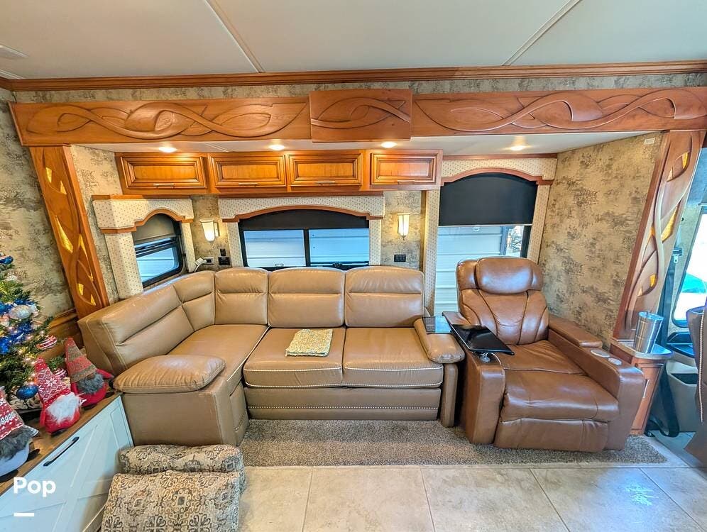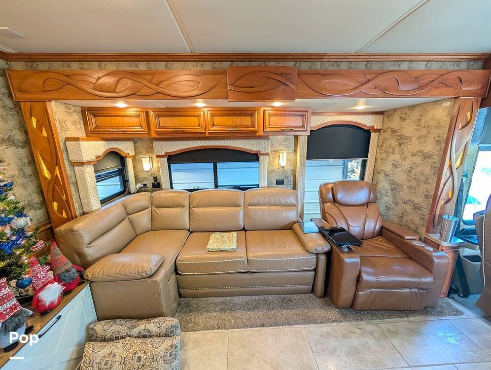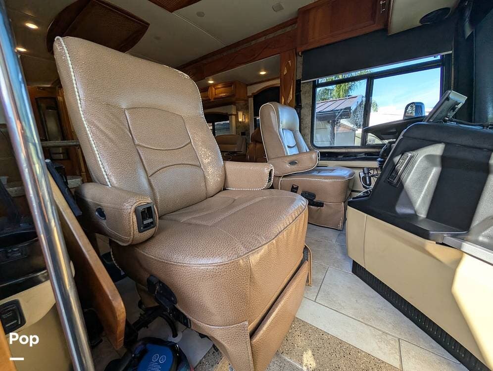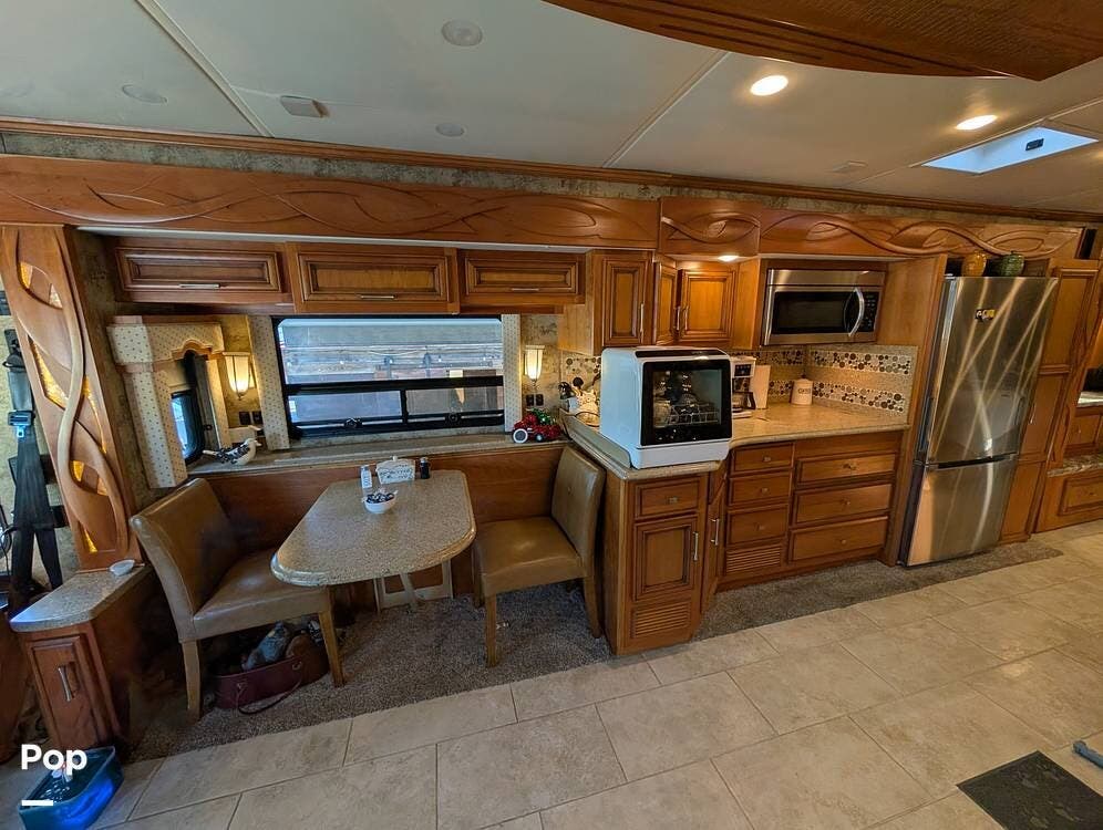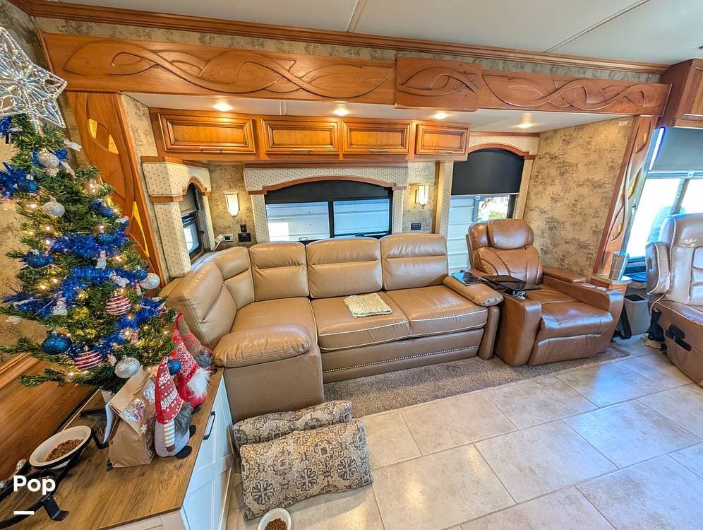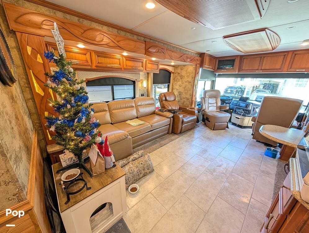 Step inside and you are immediately welcomed by gorgeous maple woodwork throughout the coach, showcasing Newmar's legendary build quality and attention to detail. Elegant tile floors add durability and a high-end residential feel, while large windows fill the space with natural light. The living area is designed for both relaxation and entertaining, featuring a comfortable sectional sofa paired with a separate oversized power recliner. The freestanding dinette provides a flexible dining or workspace option and includes a clever "Televator" that rises smoothly for easy viewing and tucks away when not in use.