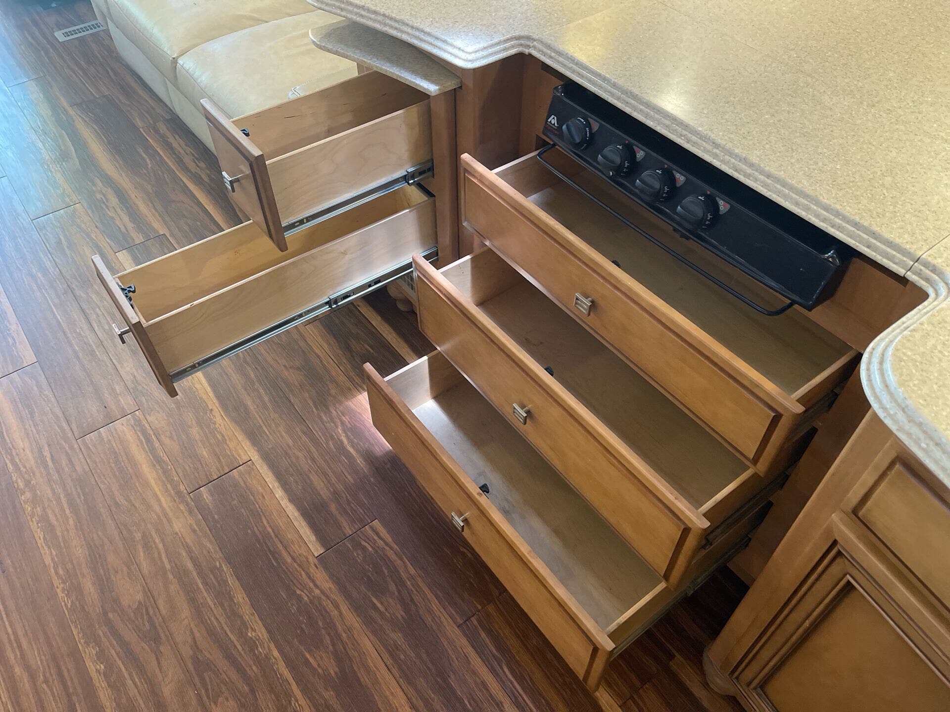 Air Assist Suspension, Awning, Backup Monitor, External Shower, Hitch, Ladder, Leveling Jacks, Power Entrance Step, Power Roof Vent, Skylight, Slideout, Slide-out Awning -