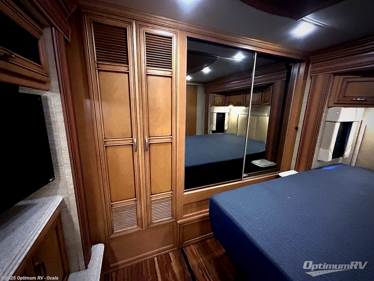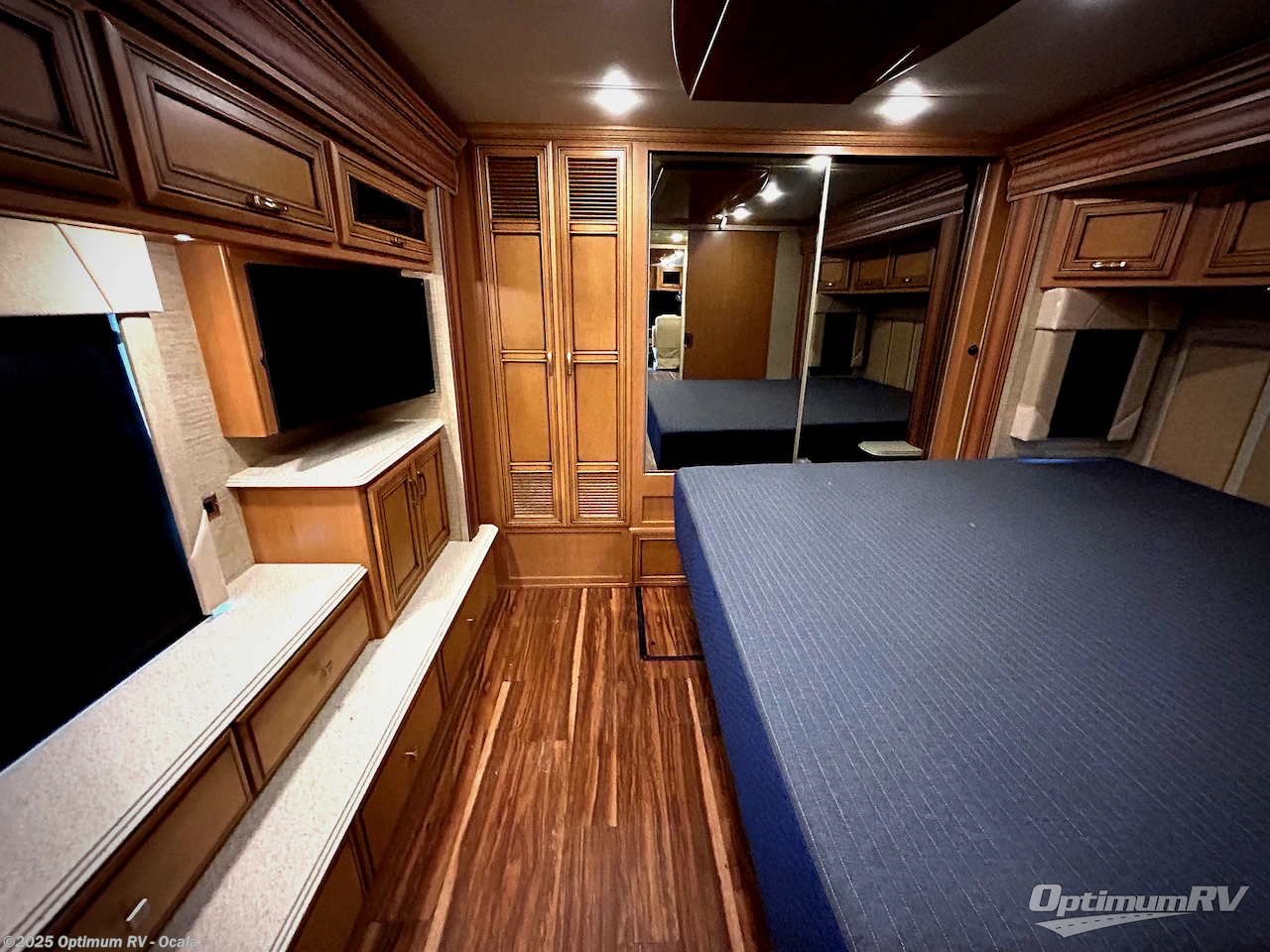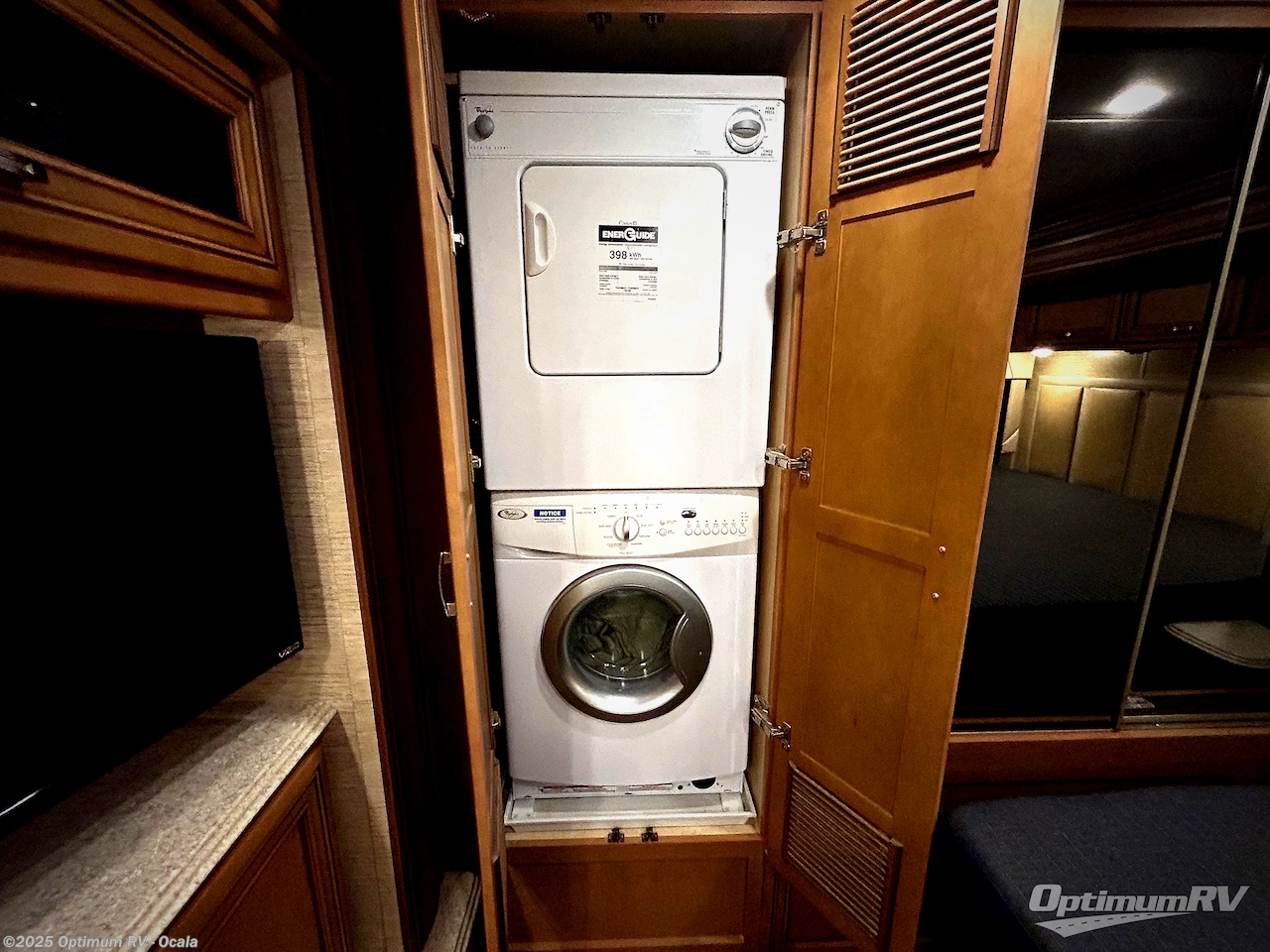 Continue to the rear of the coach to find a bedroom including a king bed slide with overhead cabinets, nightstands, and on the opposite side of the room there is a slide out with a dresser, TV, and overhead cabinet. A full wardrobe with sliding mirror doors is sure to catch the eye of any woman, plus an additional wardrobe or choose a washer and dryer instead, is along the rear wall of the bedroom.