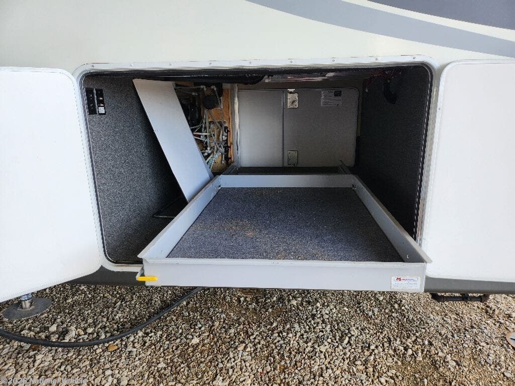 Outside, find generous space in several compartments, Slide out tray in the main pass-through storage. Generator is included.