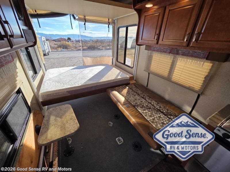There is a full electric lift bed at the rear. You may choose to add an optional second bunk, a convert-a-U dinette or a reversible rear lounge.