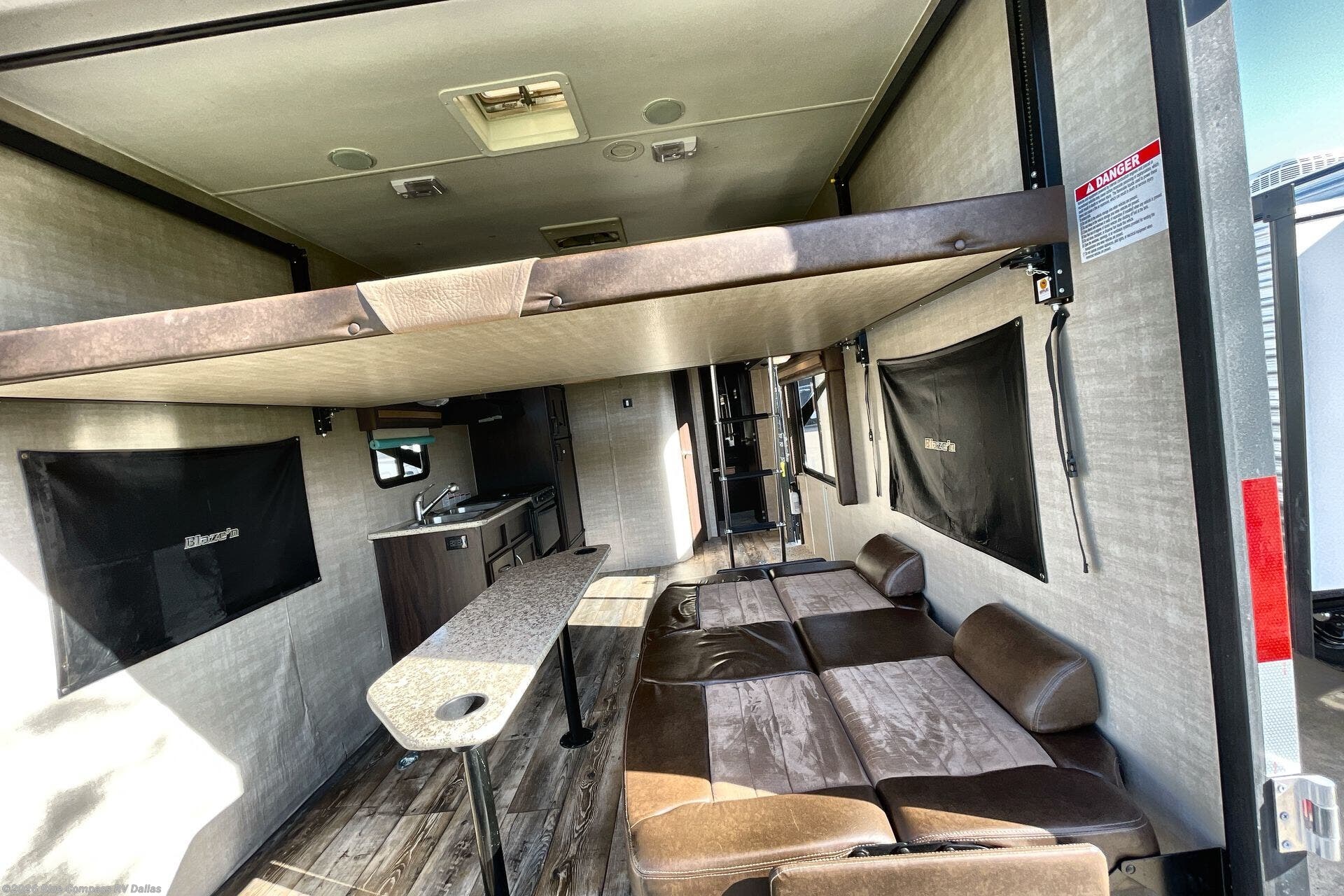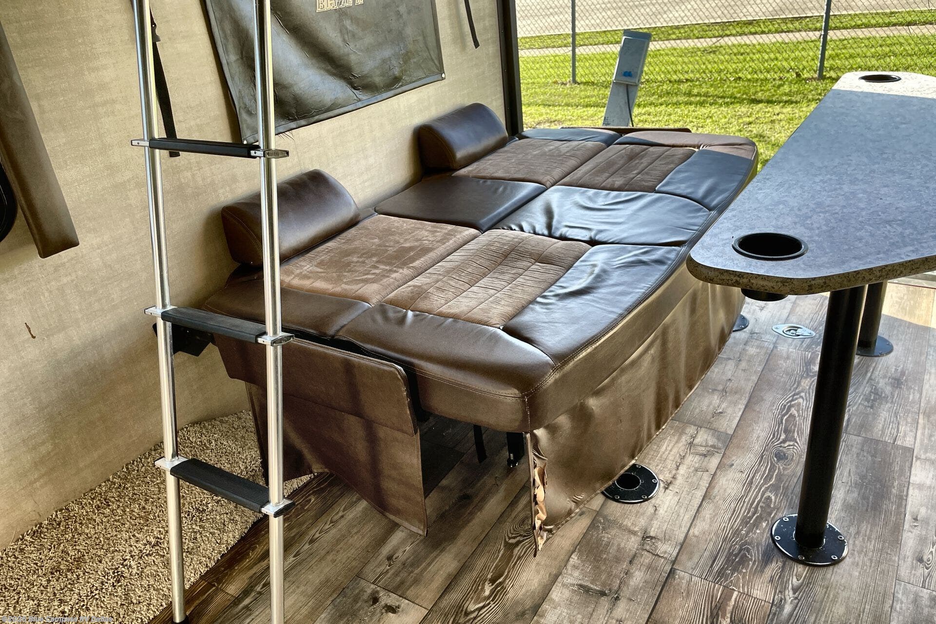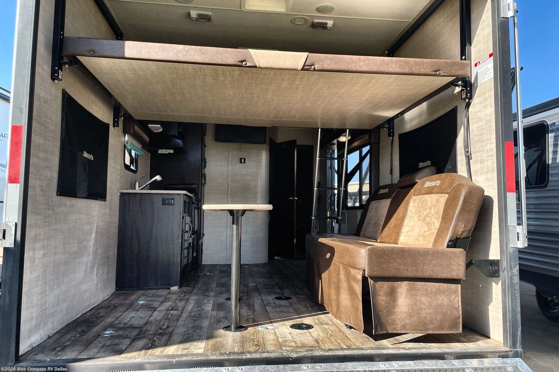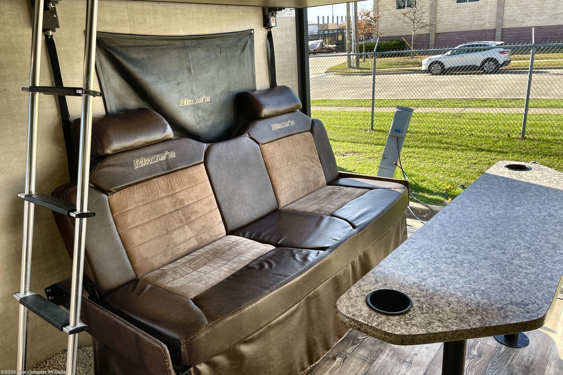 This Pacific Coachworks Blaze'n toy hauler features a front private bedroom, dual fold down sofas with pedestal tables, and offers 6'1" up to 13' of cargo space for your favorite toys.