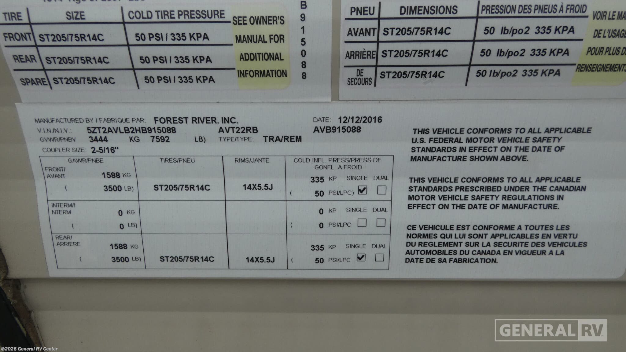 Request More Info on this 2017 Prime Time Avenger 22RB Offered for sale by General RV Center
