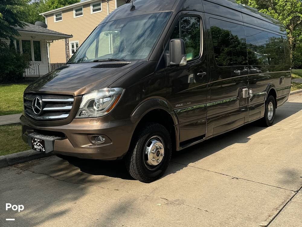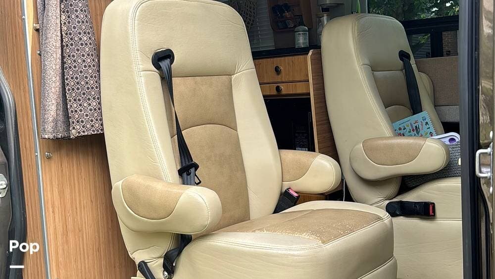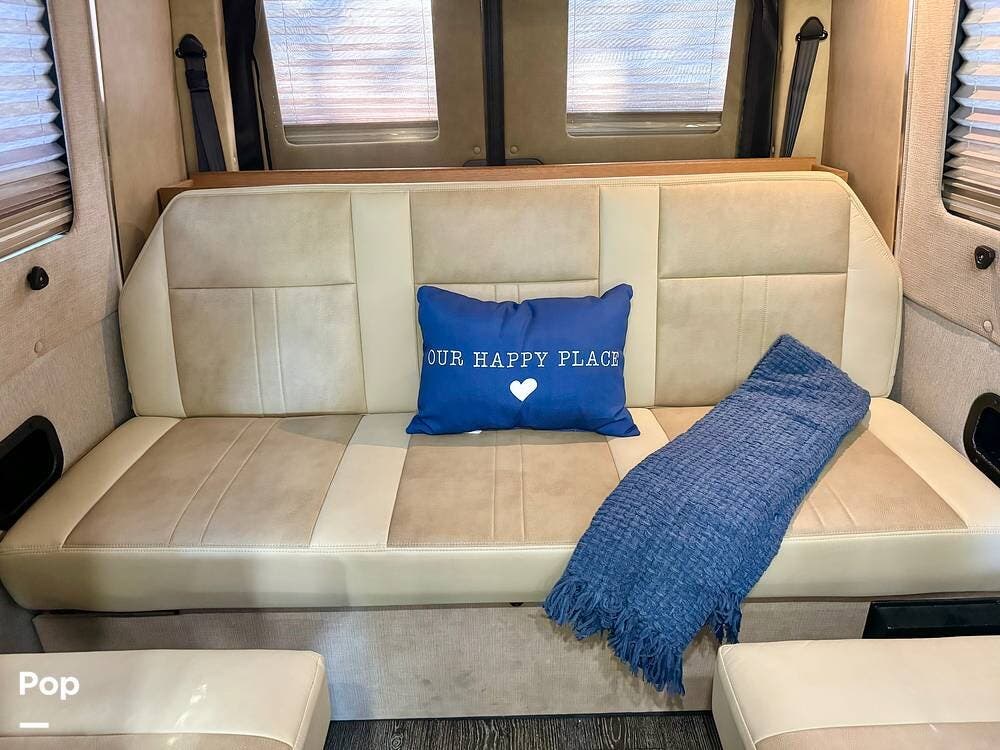 The 2017 Roadtrek Adventurous XL RS is a Class B motorhome designed for both comfort and functionality. Built on an extended 24' 1" Mercedes-Benz Sprinter chassis, it features a sleek exterior and a well-appointed interior that maximizes space and convenience. At the front of the unit it has 4 Captain's chairs that swivel with a pop-in table for meals or a card game. At night the seller had a custom mattress made for the cab to accommodate one person. At the rear is a power sofa that easily converts into a king-size bed.