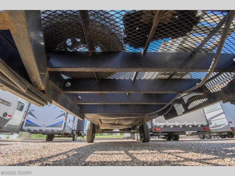 Toy Hauler Deck: Front storage area for bikes, coolers, or camping gear.