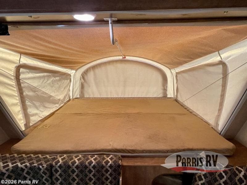 The front also offers a queen size tent end bed with overhead shelf, and so much more!