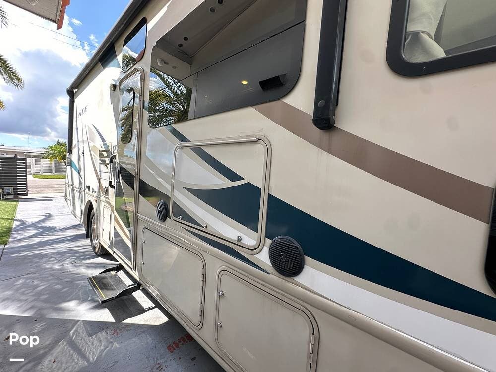 The 2017 Thor ACE 27.2 is a versatile Class A motorhome that embodies comfort and practicality, making it a great choice for adventurers and families. As you approach, you'll notice its sleek exterior design, highlighted by bold graphics and a streamlined silhouette that enhances its appeal on the road.