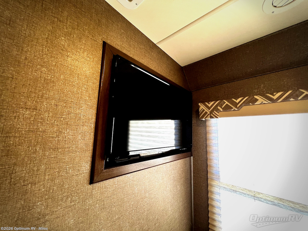 As you enter there is a 32" LED TV above the door. This can easily be viewed from the Dream Dinette that is straight ahead. The dinette features seat belts for safety while traveling, and it easily makes into a bed.