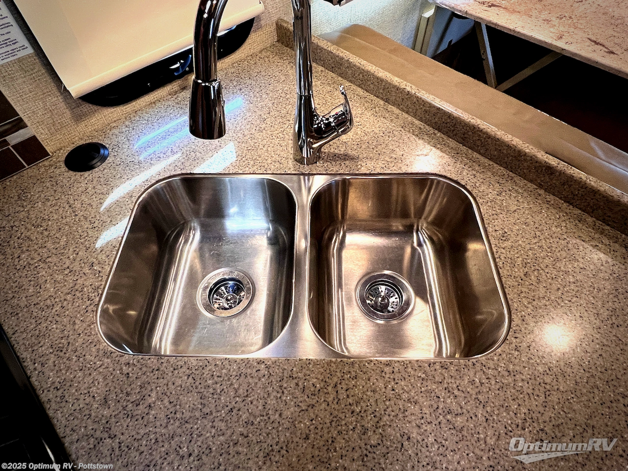 As you enter you will see a 68" jackknife sofa to your immediate right featuring comfortable seating during the day and it can easily be made into sleeping space at night. There is a Dream dinette opposite that is part of the full driver's side slide. Next to the dinette is a large kitchen sink with overhead storage, a three burner range with microwave oven above, plus a refrigerator and pantry are across the unit to the left of the entrance door.