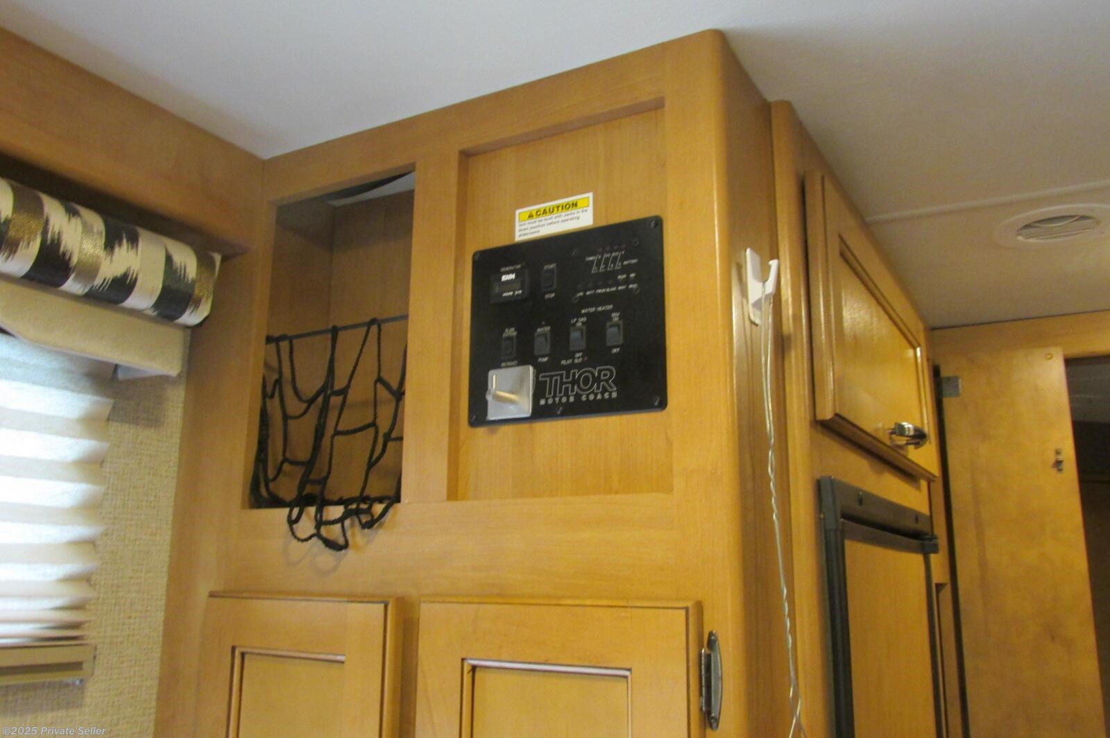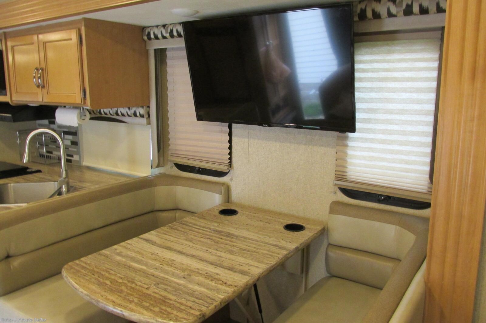 INTERIOR: 84” ceilings ceiling A/C (15,000 BTU) 2 powered ceiling fans 4 sleeping areas (king bed w/TV & stereo, jack-knife sofa, drop down dinette bed & over-the-cab drop down bed) flat panel cabinetry through-out propane gas/electric appliances (stove/oven, furnace, refrigerator, water heater, microwave) BATH: new bath vanity faucet & shower valves 24” x 36” shower slide-out pet kibble station foot flush porcelain toilette medicine cabinet & linen cabinet micro anti-bacterial shower curtain powered ceiling vent CAB AREA: workstation area w/110VAC & 12VDC outlets touchscreen entertainment center (radio, CD player, camera monitor) removeable coffee table 2 captain chairs windshield curtains. Car Fax Report available.