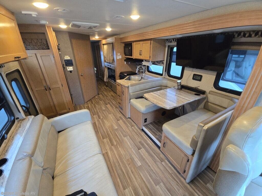 The 2017 Thor Motor Coach Ace 30.2 is a spacious and thoughtfully designed used motorhome built to comfortably sleep up to ten people. Measuring 31.6 feet in length, this model provides a perfect blend of functionality and comfort for family vacations or group excursions. Its well-appointed bunkhouse includes two bunk beds, offering flexible sleeping options that make it ideal for larger families or traveling with friends. The motorcoach features one slide-out that significantly increases living space, allowing a more open and welcoming environment to relax and socialize after a day on the road. Adding to the convenience is a single awning that extends outdoor living space by providing shade and shelter, creating a pleasant area for dining or lounging outdoors. Key practical elements such as leveling jacks ensure setup is effortless and the vehicle remains steady at any campsite. Inside, the layout is designed for maximum usability with comfortable seating and ample room for dining, entertainment, and storage. An integrated audio system enhances the travel experience by providing entertainment throughout the journey. As a used model, it offers exceptional value for anyone looking to enjoy the freedom and adventure that RVing provides without compromising on quality or comfort. This motorcoach combines versatility, ample living space, and convenience to make every trip enjoyable and hassle-free. As a family-owned, award-winning local RV dealer with multiple locations in Sumner, Everett, Kent, and Mt. Vernon Washington, Poulsbo RV is here to help you find the perfect RV. Stock#: CC5391, VIN: 1F65F5DY0H0A11984.
