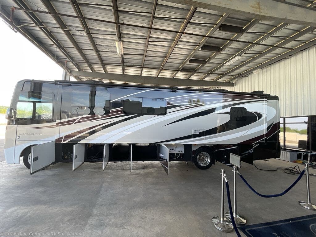 Enjoy this Challenger gas class A motorhome by Thor Motor Coach as you spend time away from home. Model 37LX features dual slide outs for added space with one full wall slide, a king size bed, and one and a half baths.
