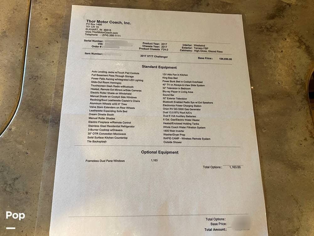 Request More Info on this 2017 Thor Motor Coach Challenger 37YT Offered for sale by Pop RVs