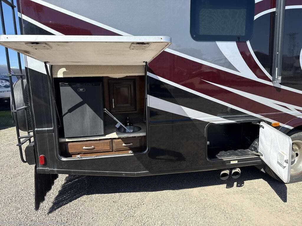 This diesel coach Chateau Super C 35SM by Thor Motor Coach provides a king size bed, a split bath, an exterior TV and kitchen, plus two more TVs inside, and much much more!