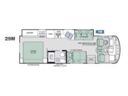 The 29M offers a king-size bed, several versatile sleeping areas, a complete kitchen, a full bathroom, and entertainment options including multiple flat-screen TVs.