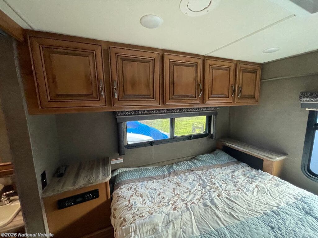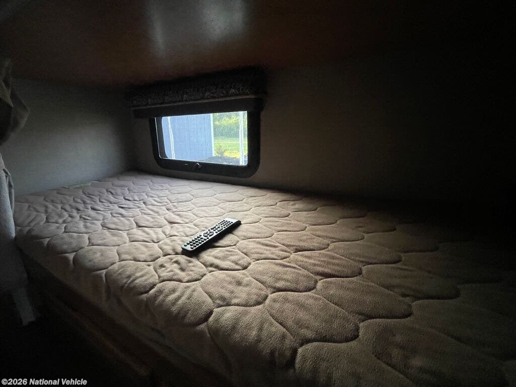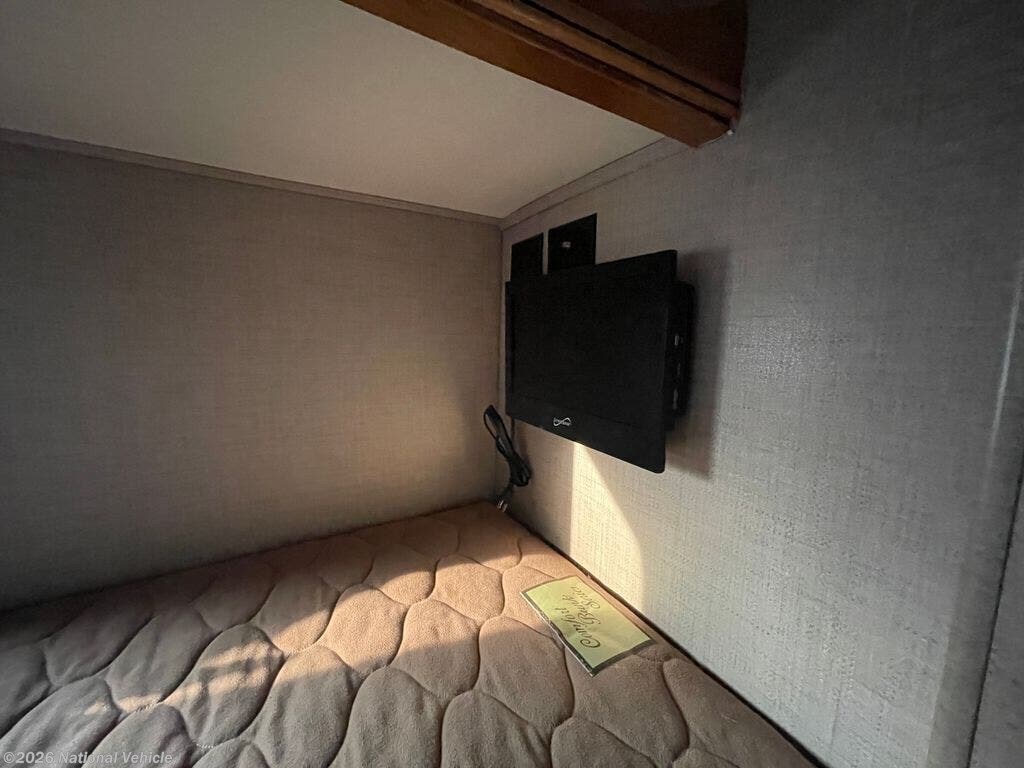 In the rear master you will enjoy a queen size bed with overhead and bedside storage. Opposite the full wall slide ends with a dresser and closet, plus a 32" LED TV.