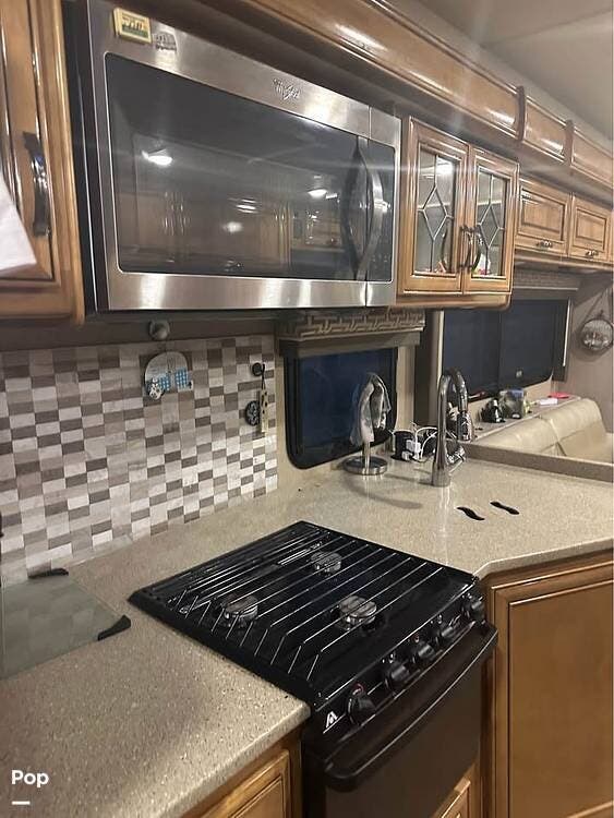 There is also a cab-over bunk with 54" x 96" sleeping space along with a 40" LED TV that can swivel for viewing throughout the coach.