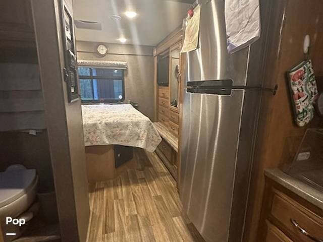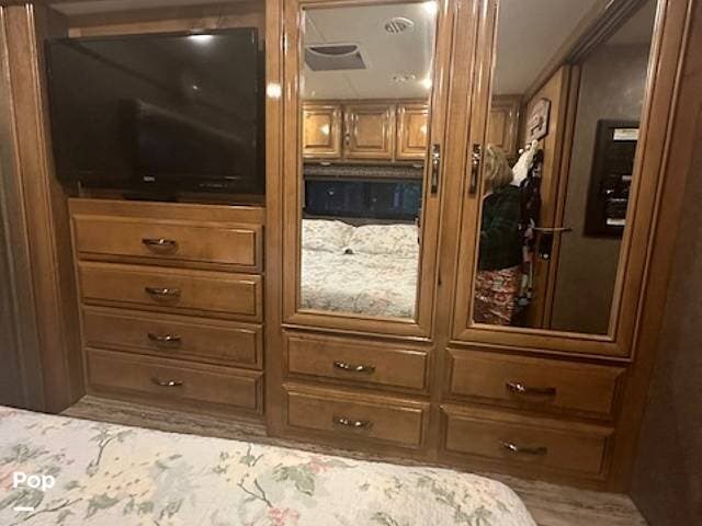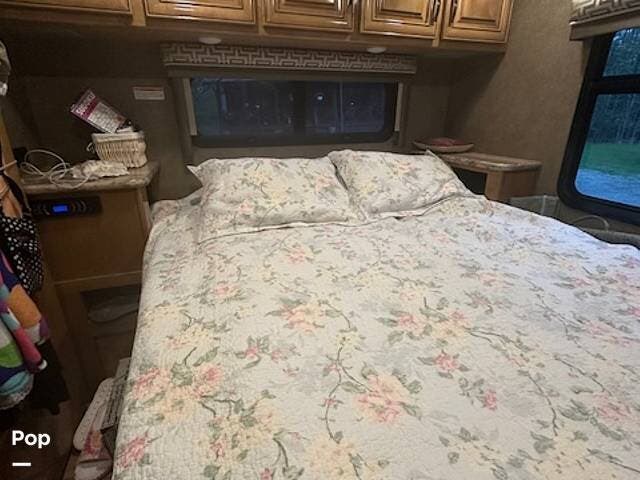 In the rear master bedroom, a closet and dresser, along with a 32" LED TV, complete the large slide-out.