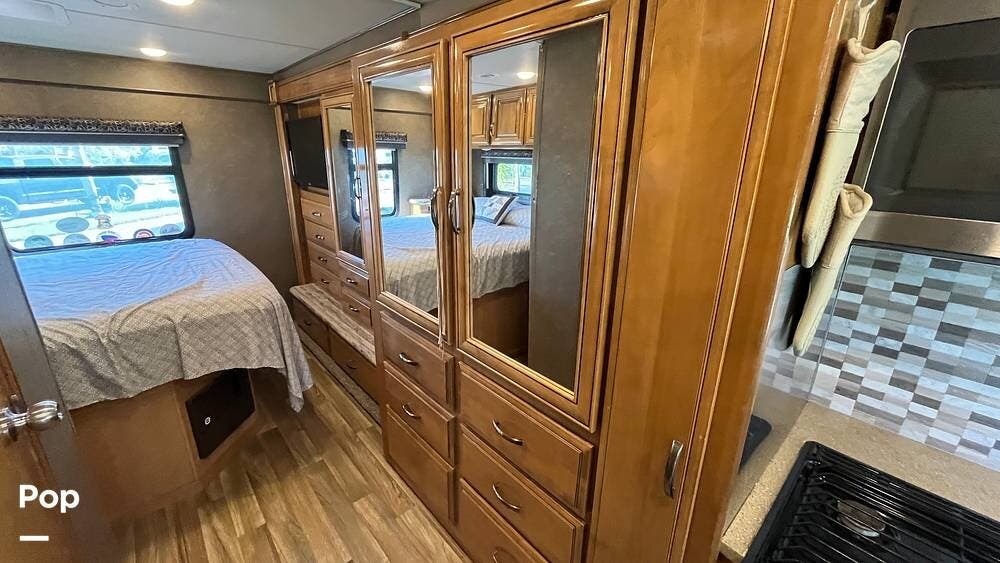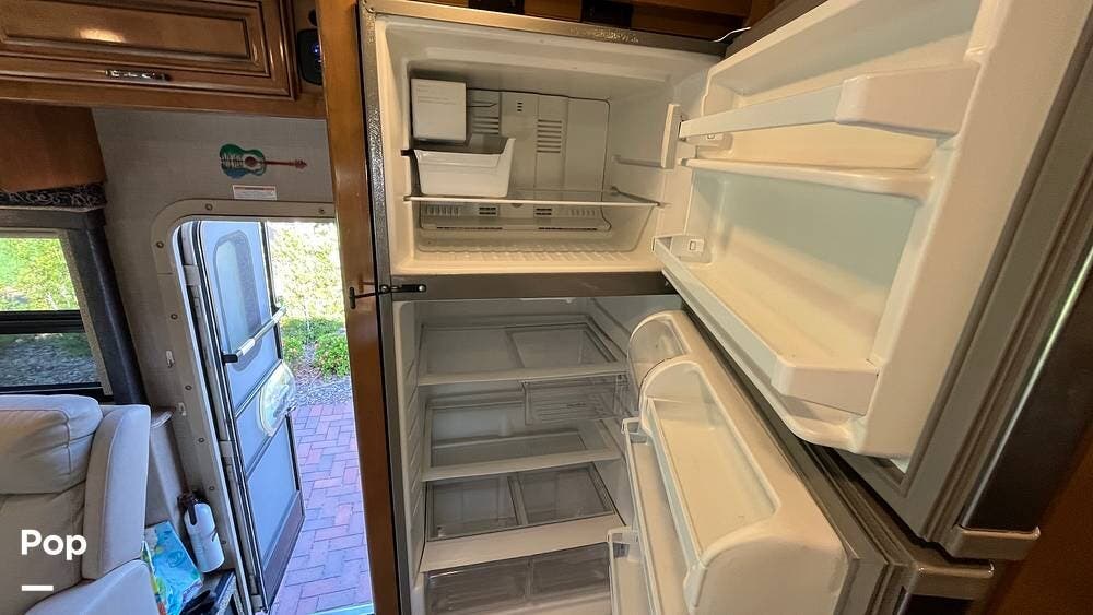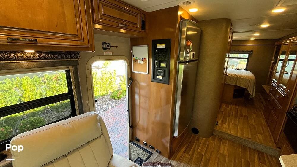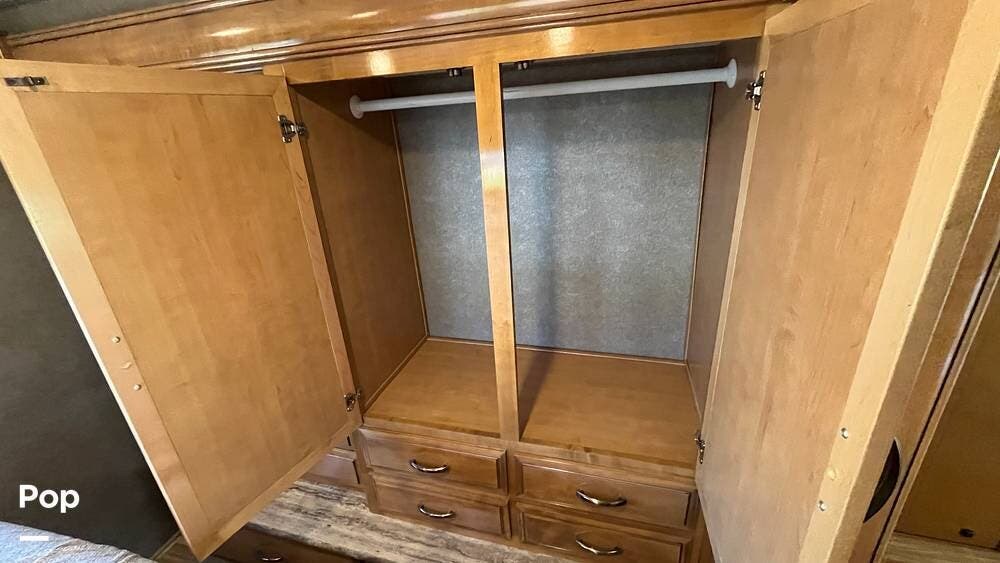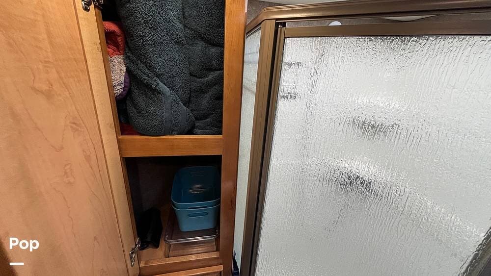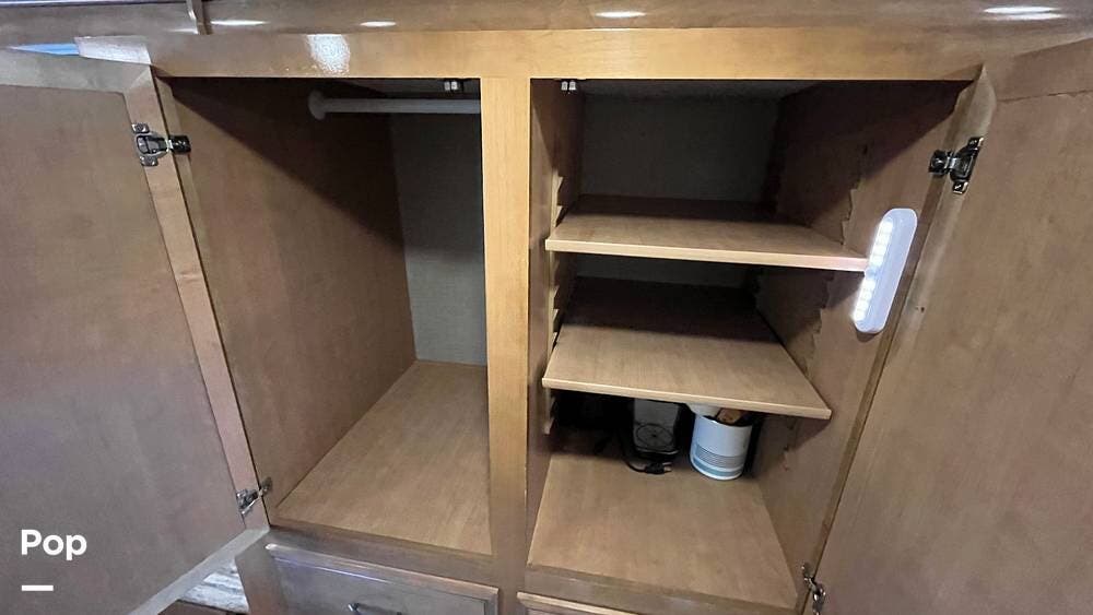 Length overall is 32'2" and features one Super-Slide that really opens up the interior feeling. When the slide is in, you can still access the bathroom, refrigerator, and bedroom.