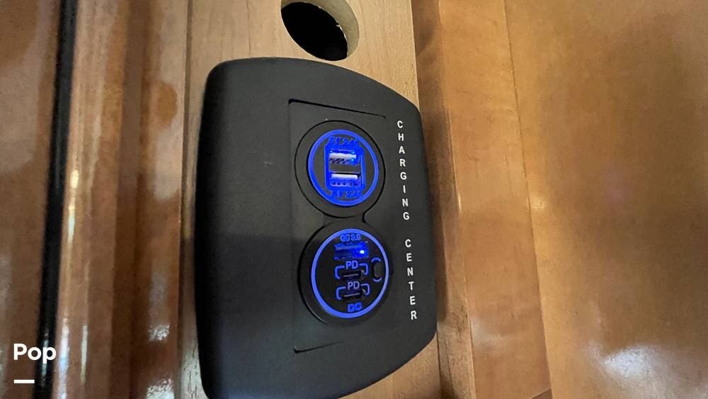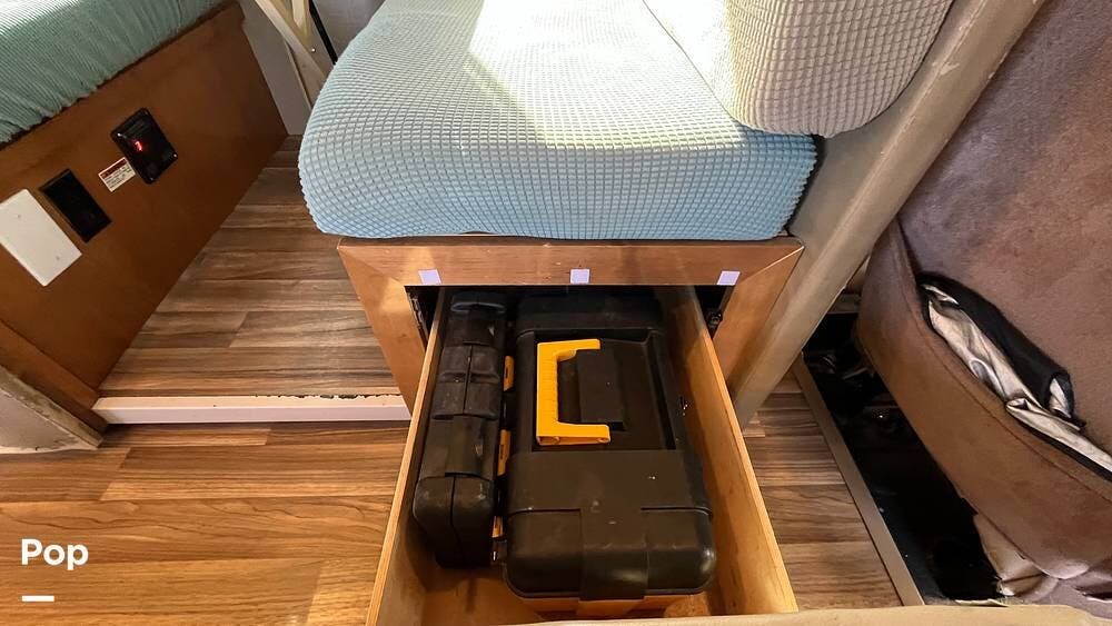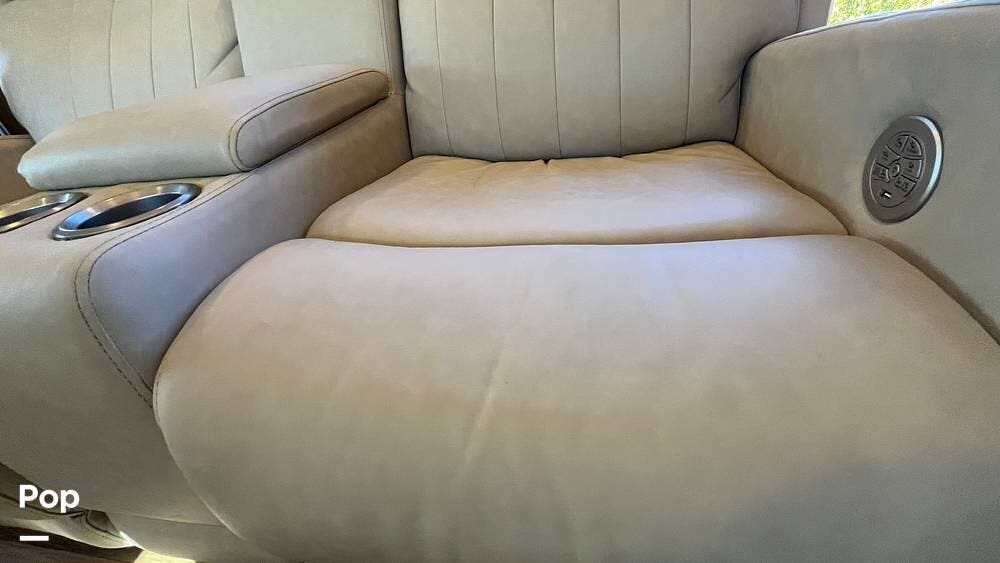 Step inside and you'll immediately appreciate the spacious layout and residential touches. The full-wall slide-out opens up a bright, inviting living area featuring a newer electric twin recliner, convertible dinette, and an LED TV with a swivel mount.