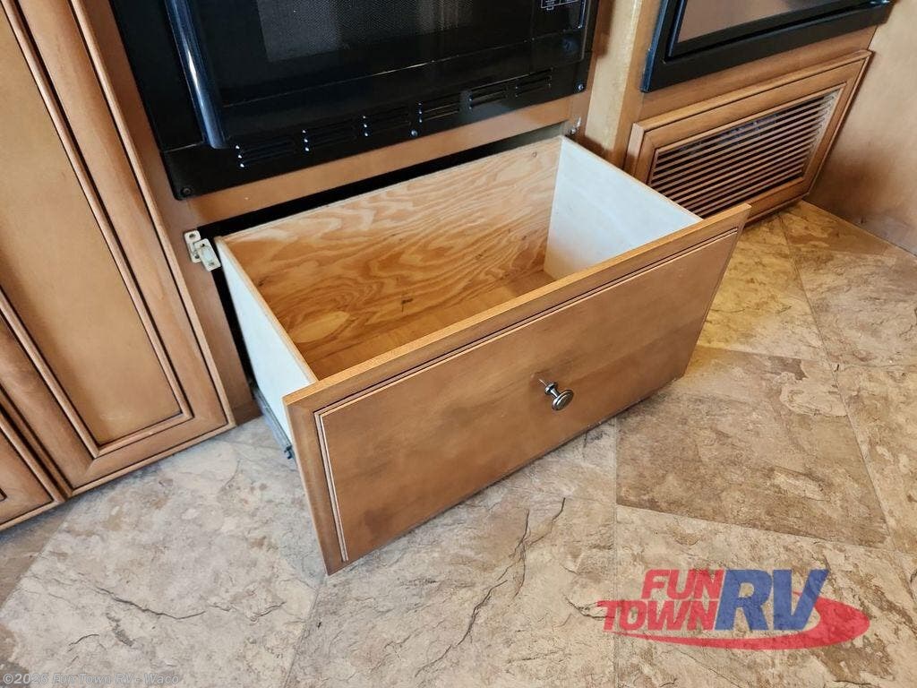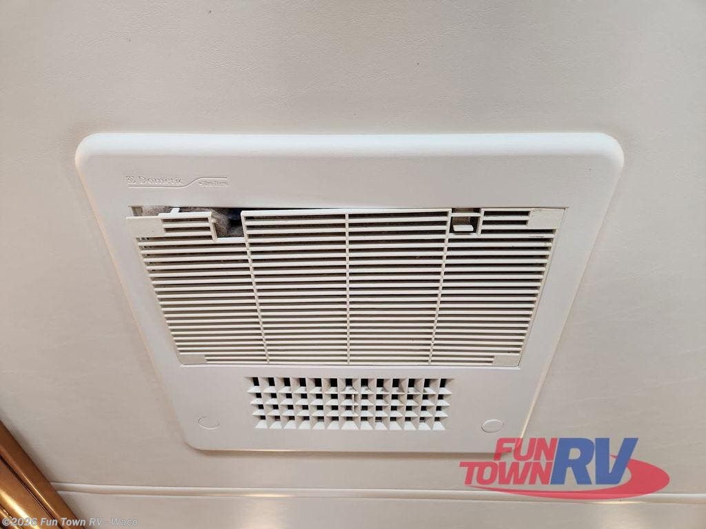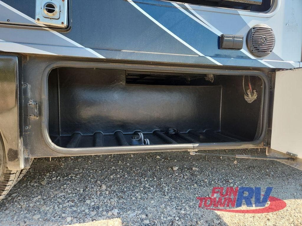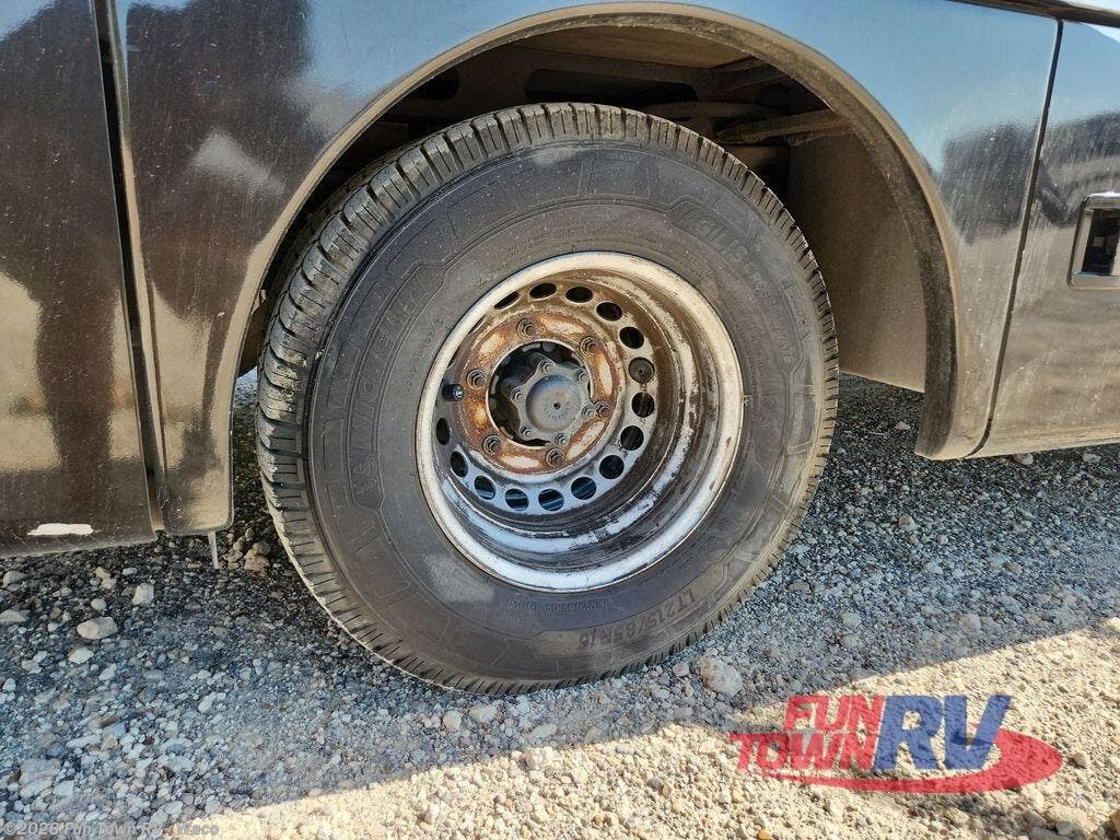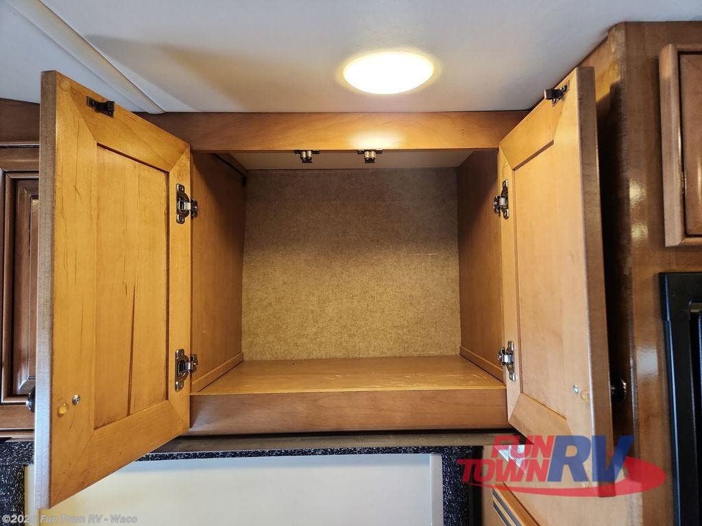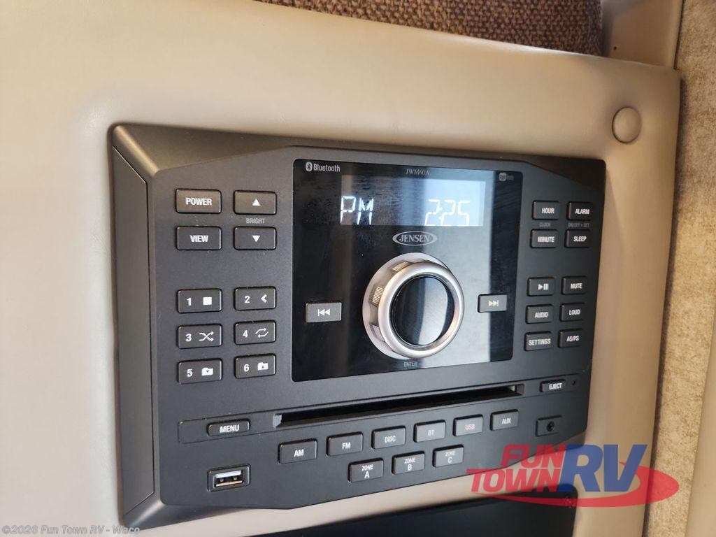 In the rear of the Siesta Sprinter 24SA you will find a corner bathroom including a shower, vanity sink, medicine cabinet, and a toilet. There is a closet just outside the bath. The opposite rear corner holds a full size bed with overhead cabinets and a 24" LED TV for your enjoyment.