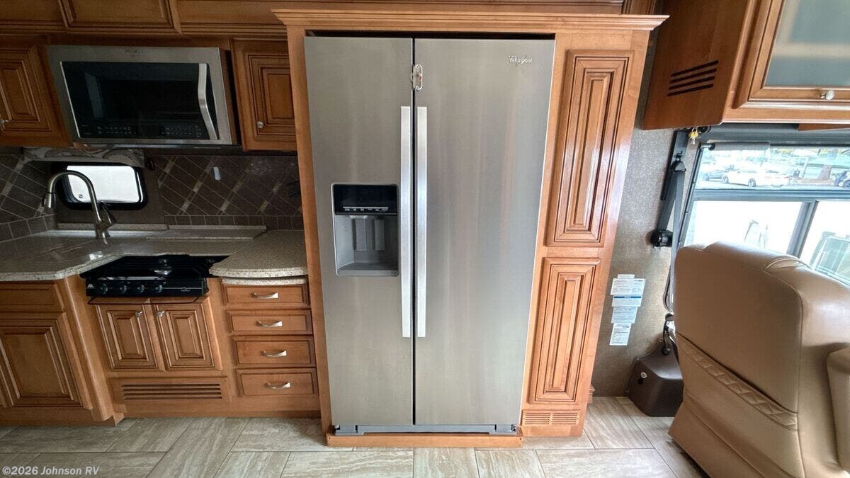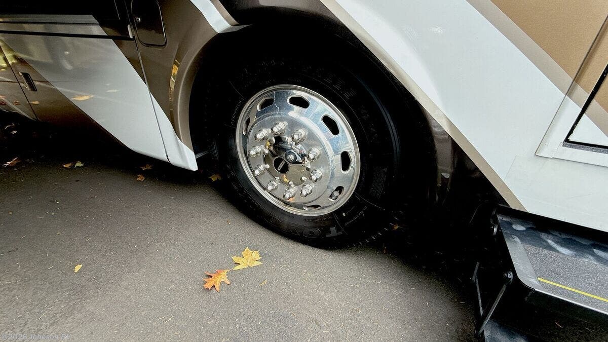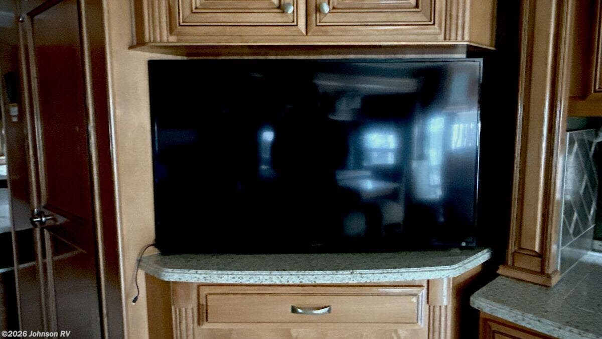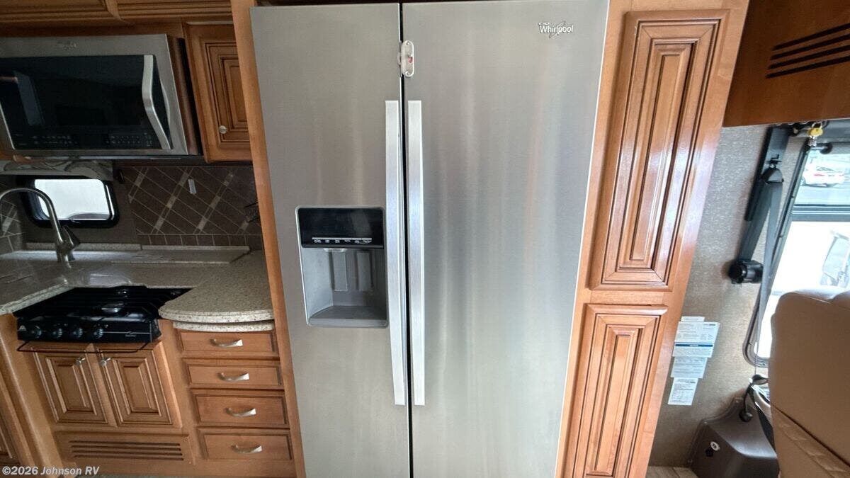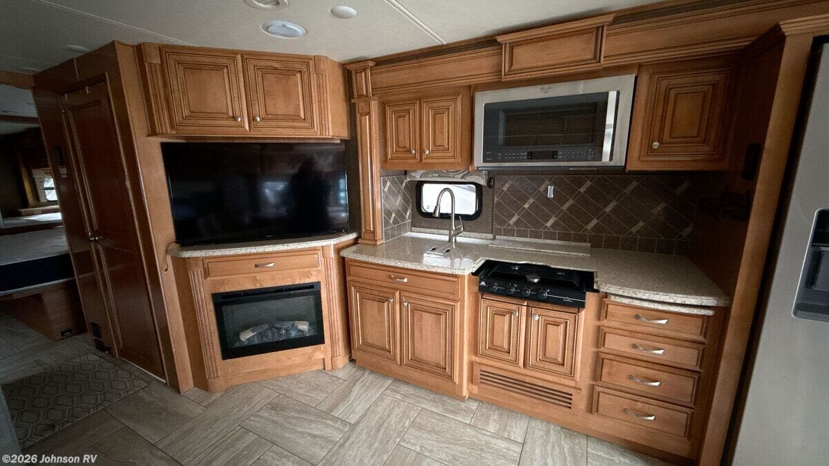 Features Include: 100-Gal Fuel Tank, Air Ride Suspension, Exhaust Brake, Aluminum Wheels, 10000# Hitch, Air Horn, Driving Lights, Fog Lights, Cab Features, Living Spaces, Electric Step Cover, LED Accent Lighting, Entertainment Center, Buffet Dinette (vbm), Pantry, Designer Backsplash, High-Rise Faucet, 3-Burner Gas Cooktop, Systems Center, Large LED HDTV, Blu-Ray Home Theater, Overbed Storage, Reading Lights, King Bed 72x80, Pillowtop Mattress, Nightstands, Wardrobes, Dresser Drawers, 32-inch LED HDTV, Two 13-inch LED TVs, DVD Player Bathroom, Medicine Cabinet, Vanity Sink, Linen Storage, Porcelain Toilet, 126# LP Capacity, Four House Batteries, 50-Amp Service Cord, 100-Amp Converter, 2000w Inverter, EZ Flow Water Panel, 10-Gal DSI Hot Water, Welded Aluminum Cage, Fiberglass Laminate, Seamless TPO Roofing, Roof Access Ladder, LED Accent Lighting