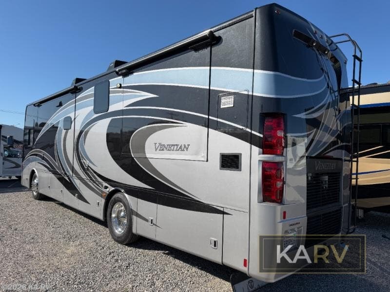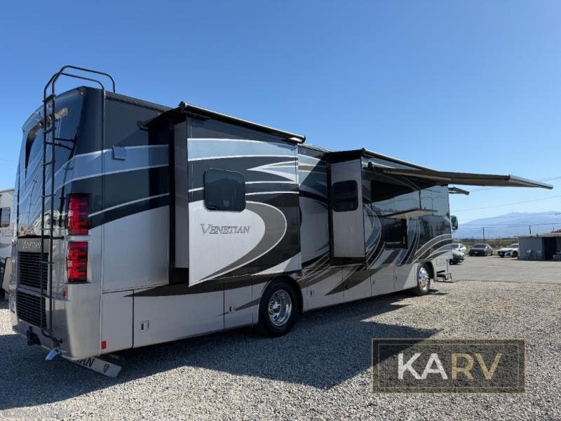 With the Venetian class A G36 diesel motor home by Thor Motor Coach you can go just about anywhere. This model features quad slides. There is also plenty of space for all of your belongings so you can enjoy extended trips away from home.