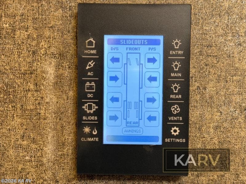 In the rear bedroom you will find a slide out king bed with nightstands and overhead storage. Step up to the rear wall wardrobe, and stackable washer/dryer.