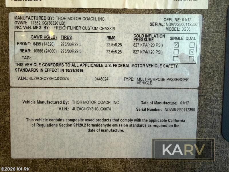 Request More Info on this 2017 Thor Motor Coach Venetian G36 Offered for sale by KA RV