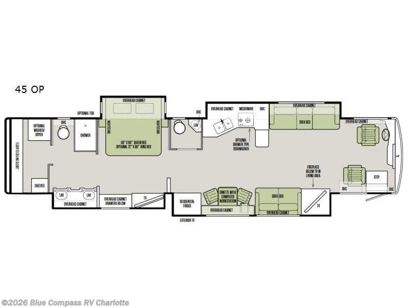 The Tiffin Motorhome 45 OP Allegro Bus features quad slides, and a bath and a half.