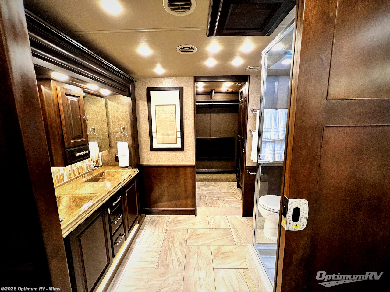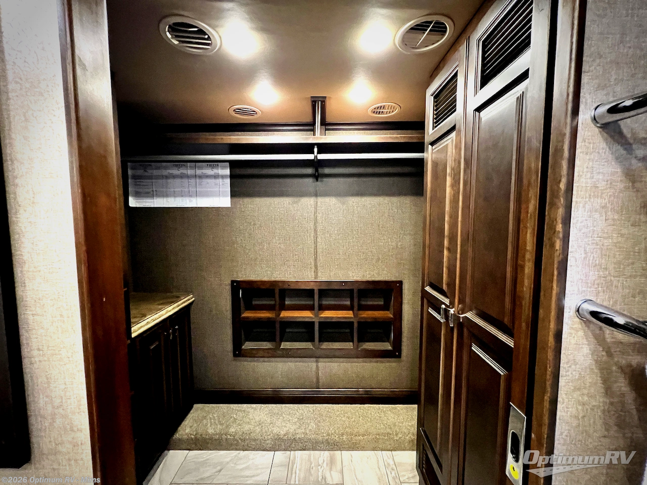 Located in the rear of the motor home there is a spot for an optional washer/dryer, which is an added plus, now you can do laundry as you camp or travel, so you won't have to bring home a bunch of dirty clothes. Enjoy the floor to ceiling closets, which adds so much extra storage space.