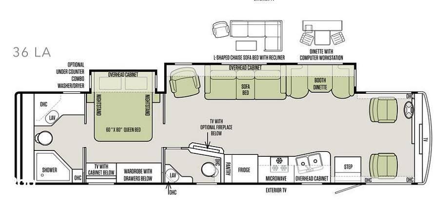 Equipped with the 6.8L V-10 Ford gas engine, the coach delivers plenty of power and is a pleasure to drive thanks to the Liquid Springs front suspension system!