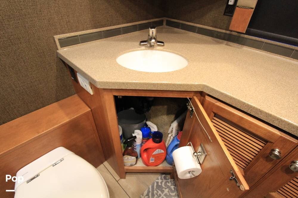 There is a half bath before entering the owner's suite, with a full bath at the rear of the coach.