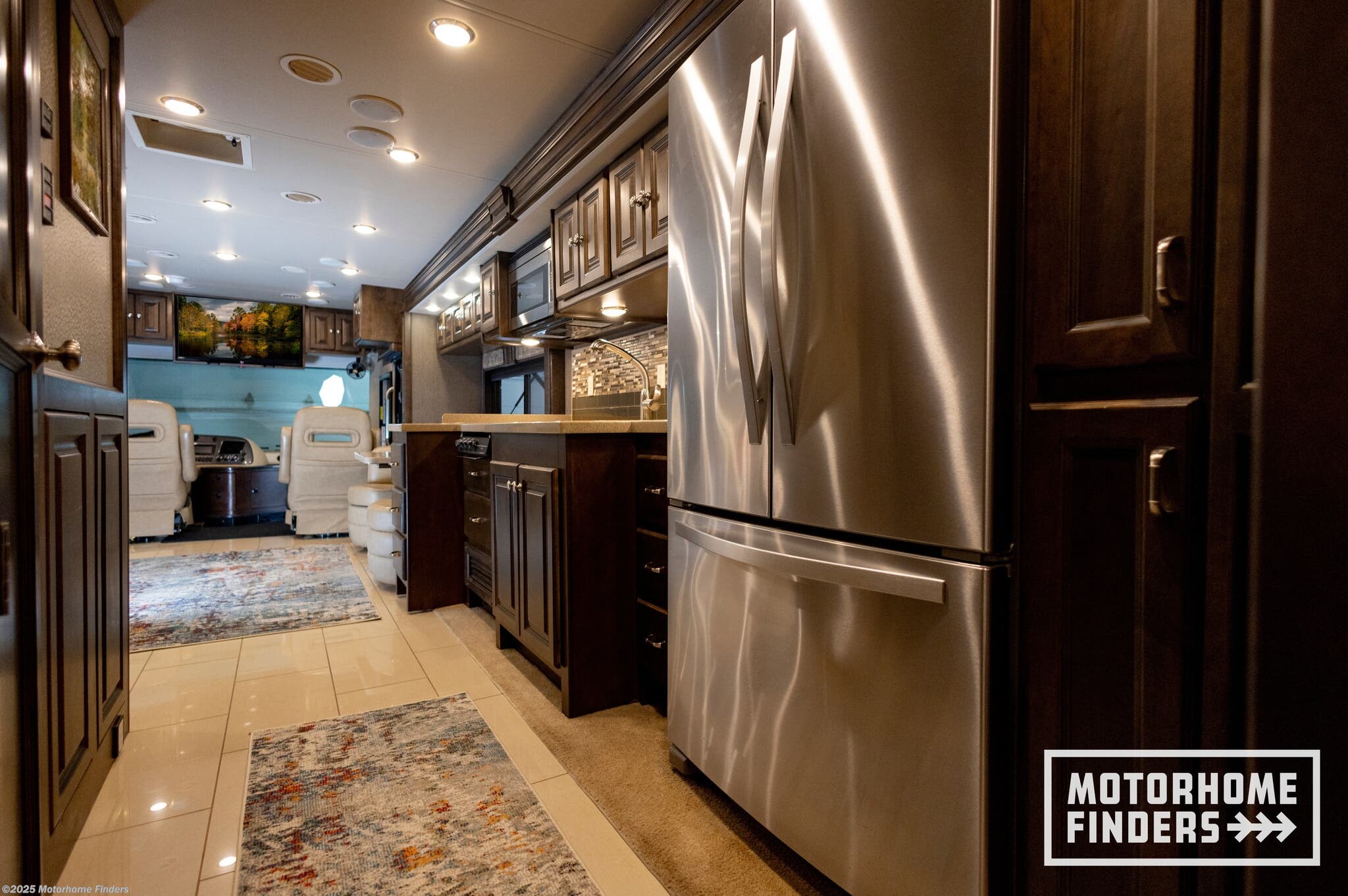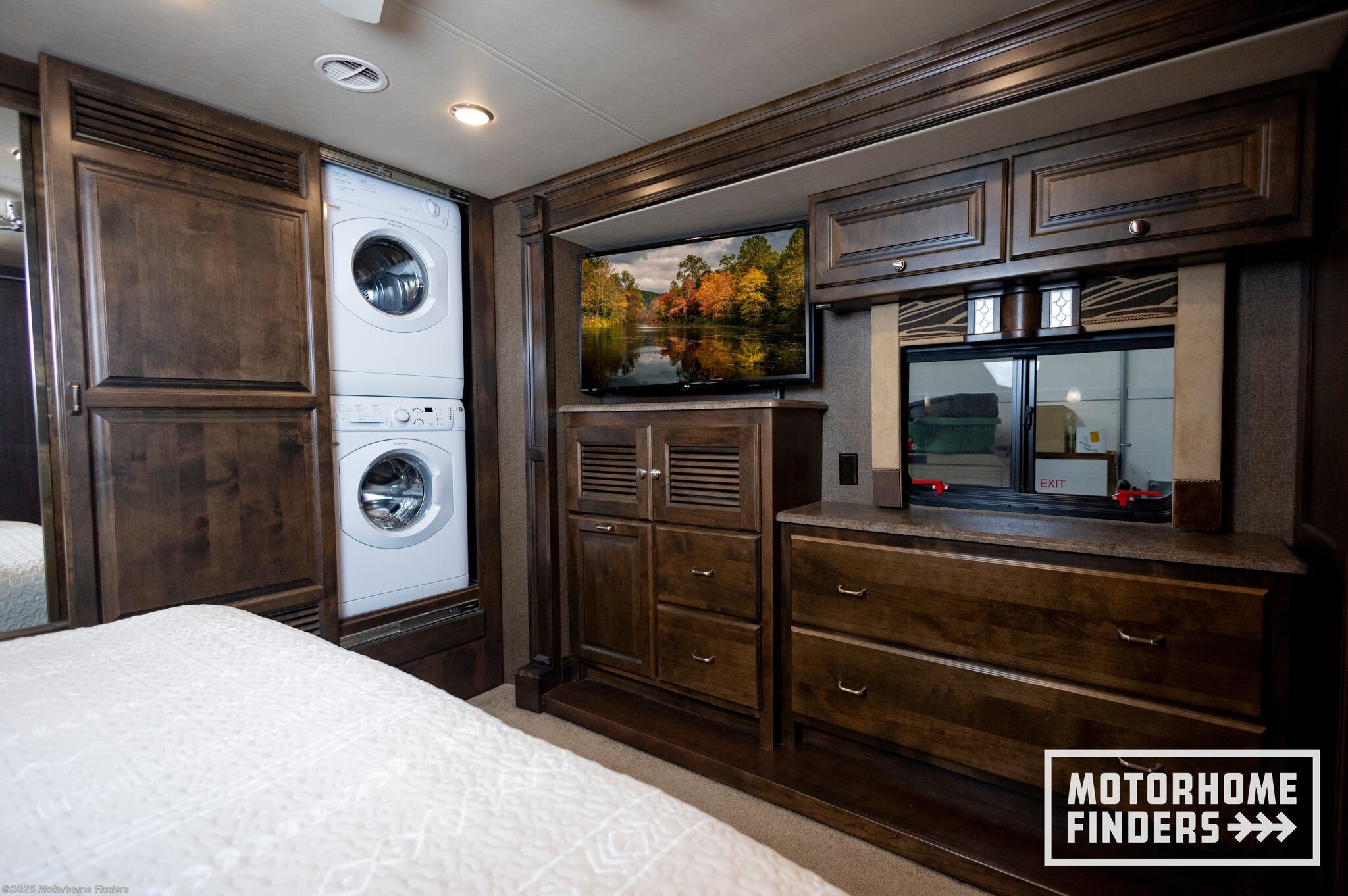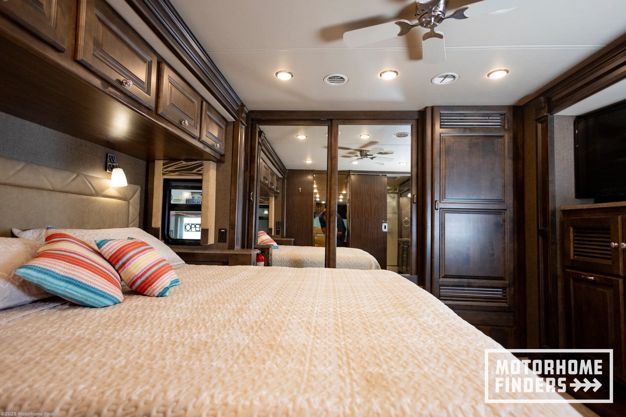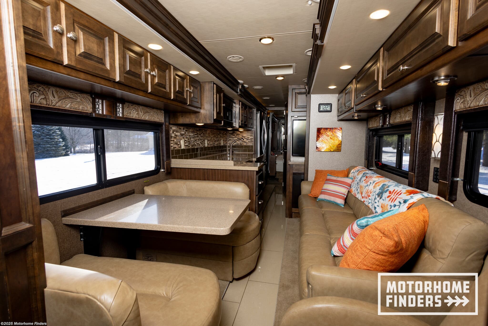 This coach has been meticulously cared for, stored indoors in a climate-controlled garage, and the exterior is hand-waxed—a level of care that keeps the paint shining and the surfaces properly preserved. All scheduled maintenance has been fully completed, and it’s ready today for a trip to Florida or anywhere you want to go. The seller is also including the next round of service filters and maintenance items, giving the next owner peace of mind and immediate savings.