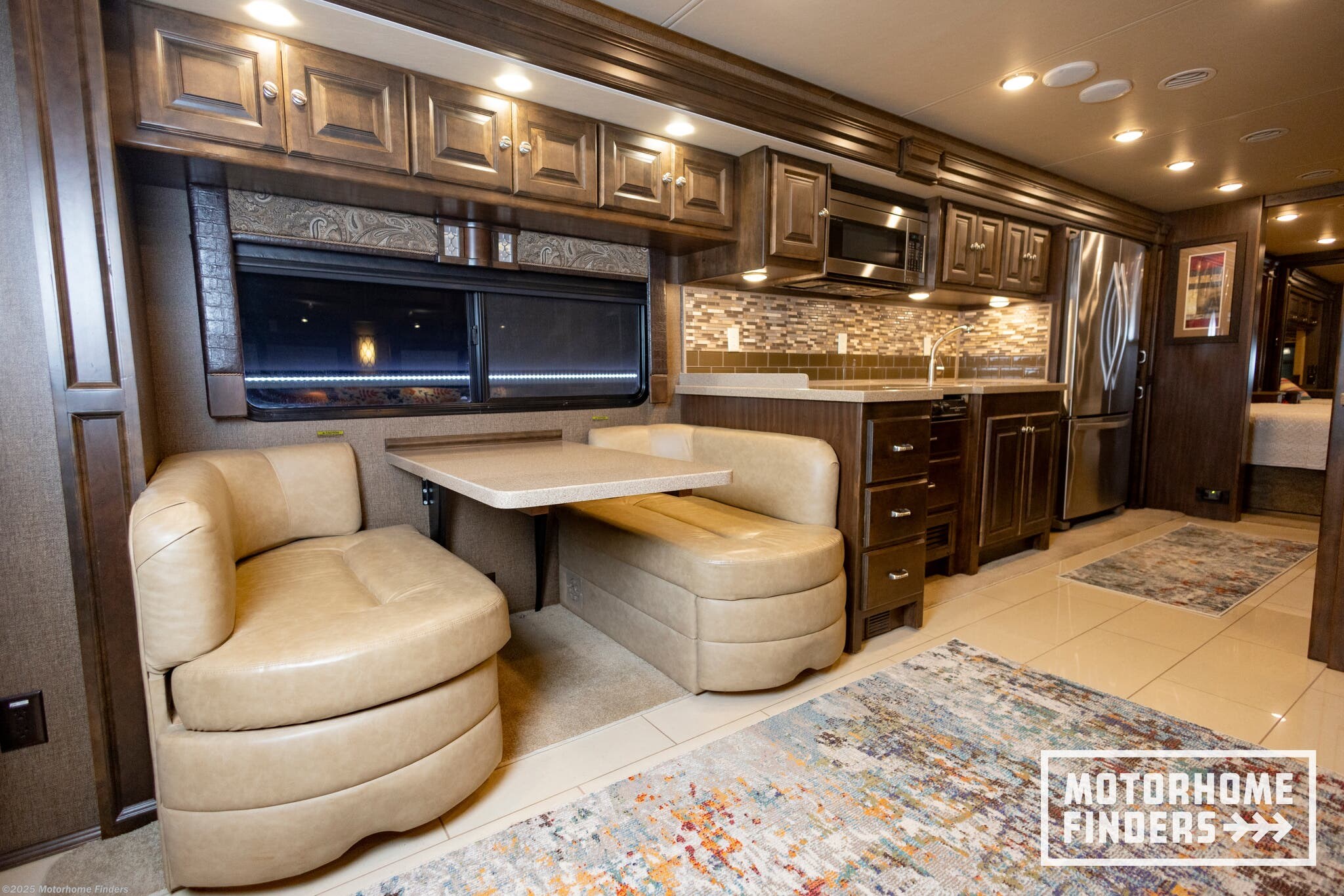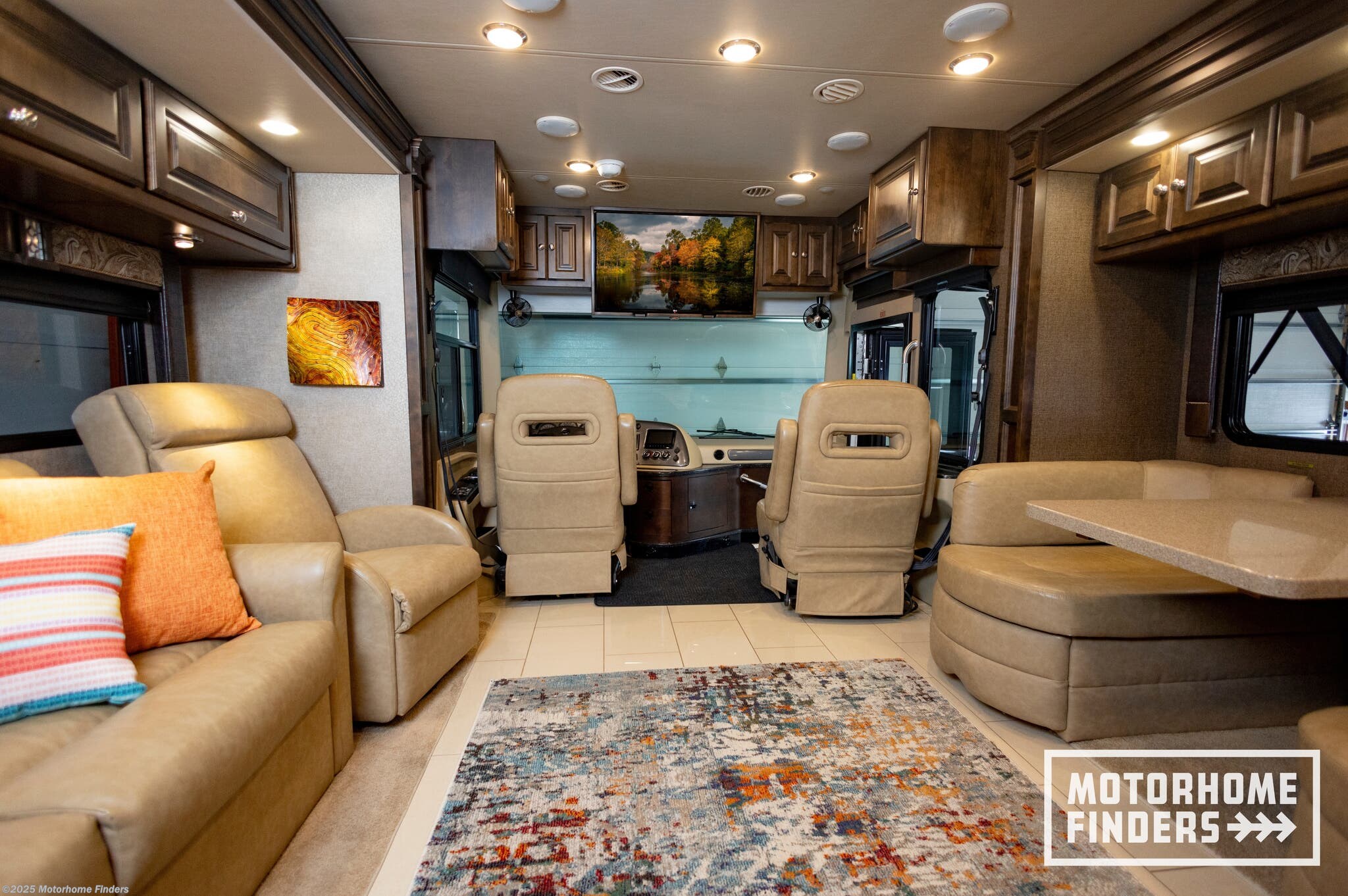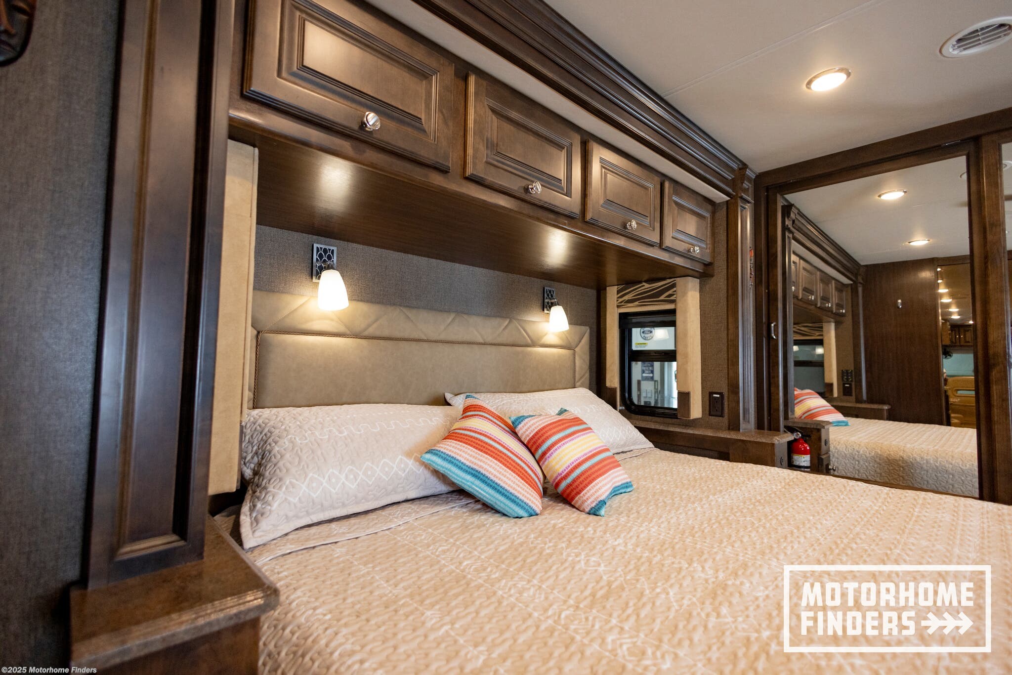 This coach has been meticulously cared for, stored indoors in a climate-controlled garage, and the exterior is hand-waxed—a level of care that keeps the paint shining and the surfaces properly preserved. All scheduled maintenance has been fully completed, and it’s ready today for a trip to Florida or anywhere you want to go. The seller is also including the next round of service filters and maintenance items, giving the next owner peace of mind and immediate savings.