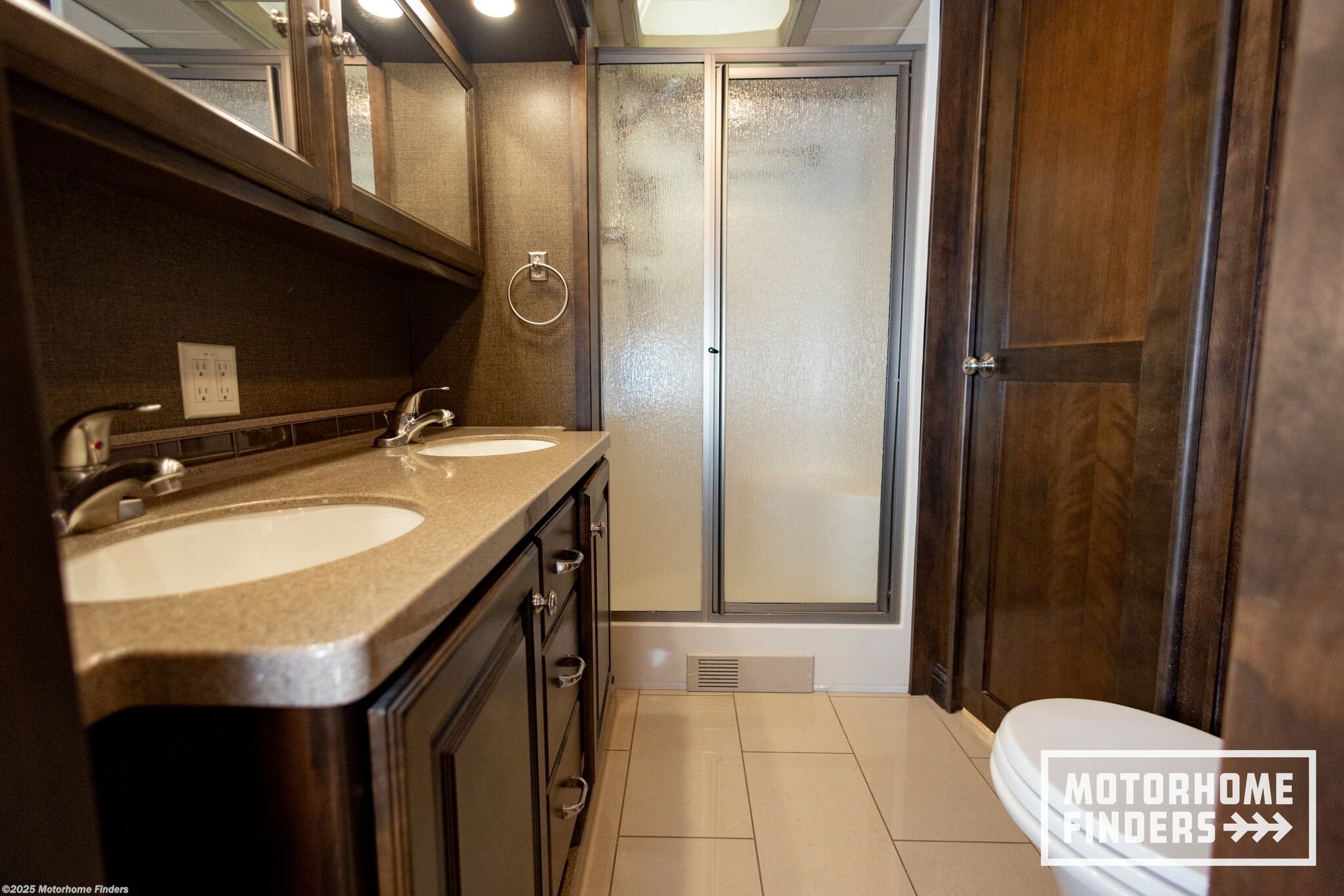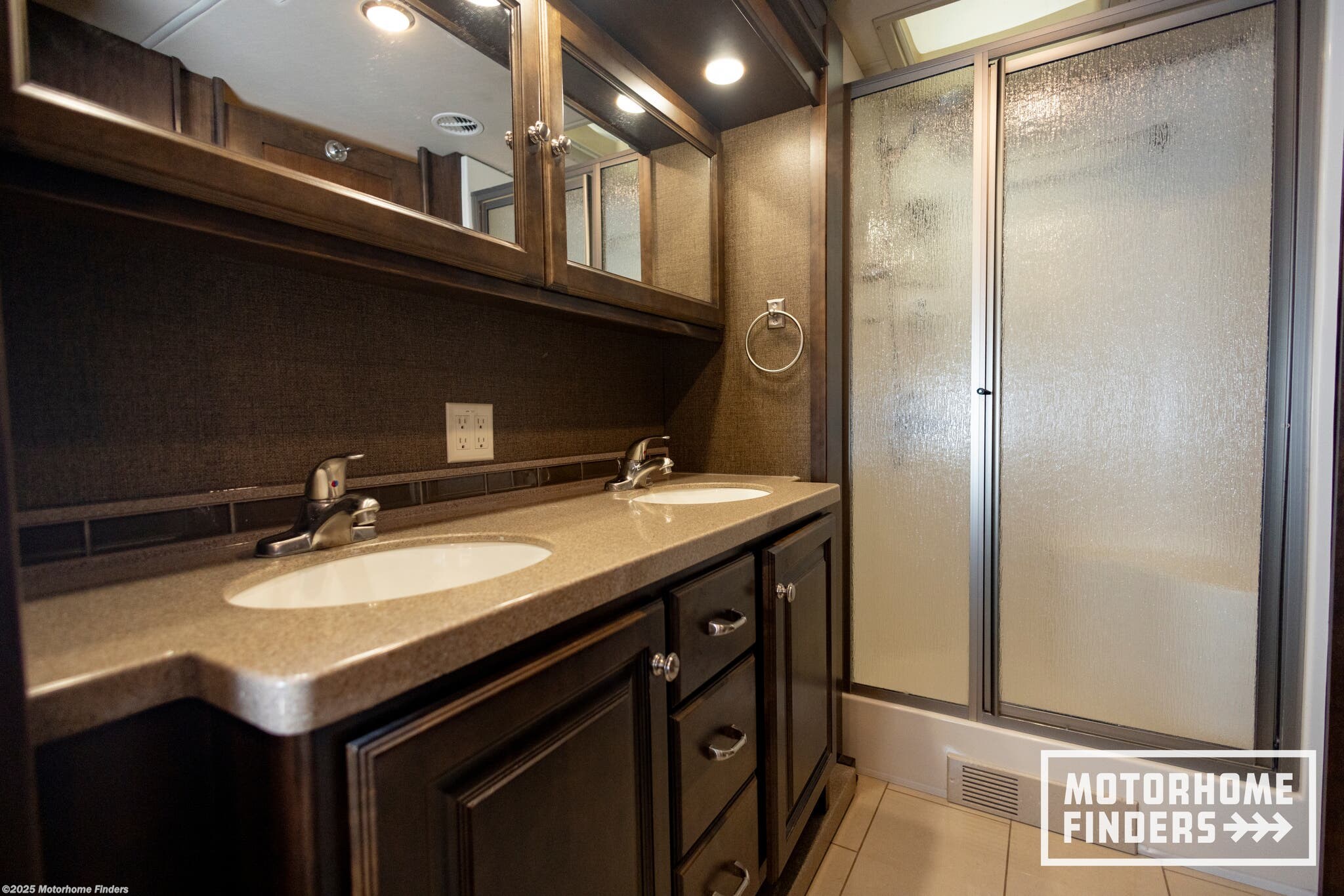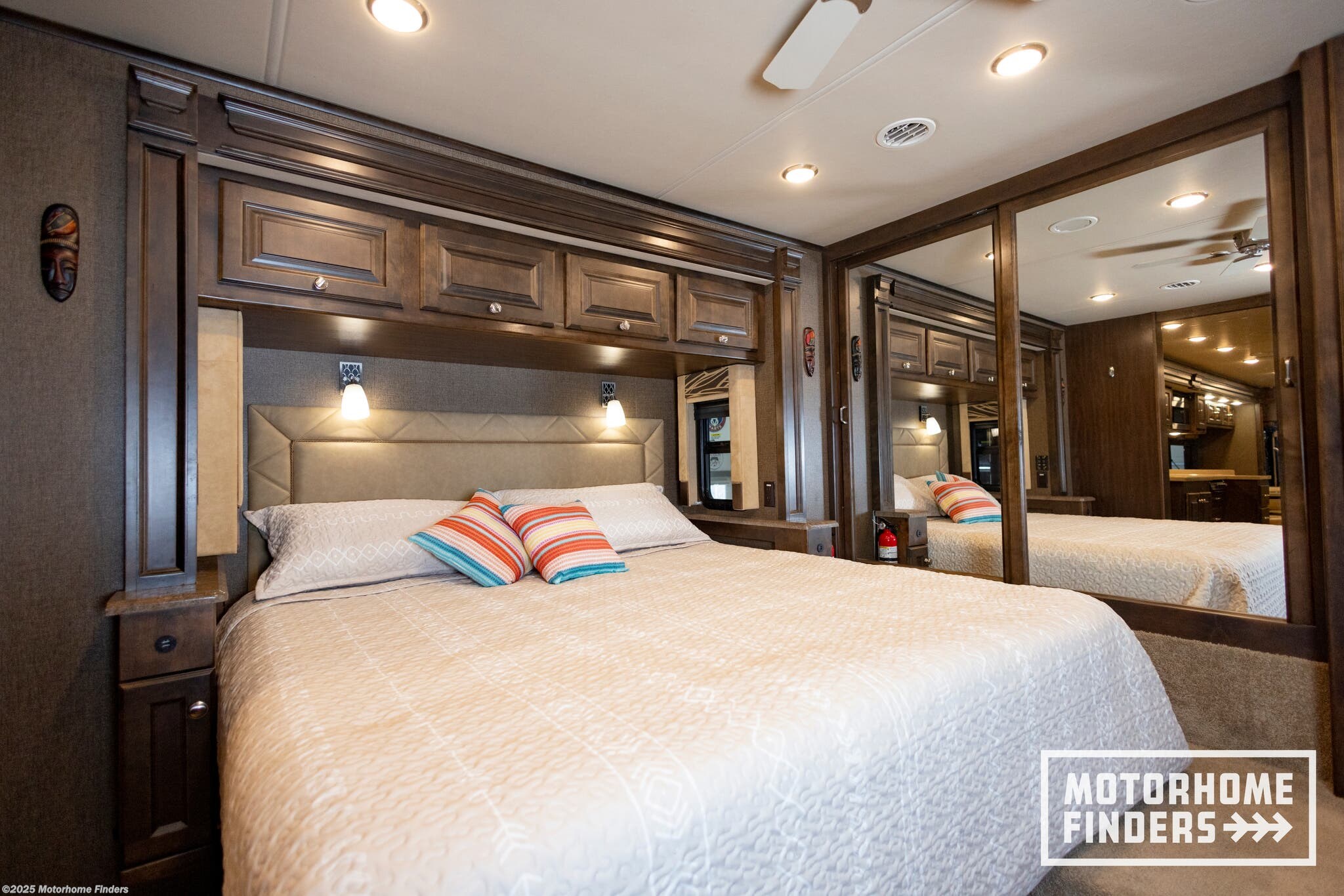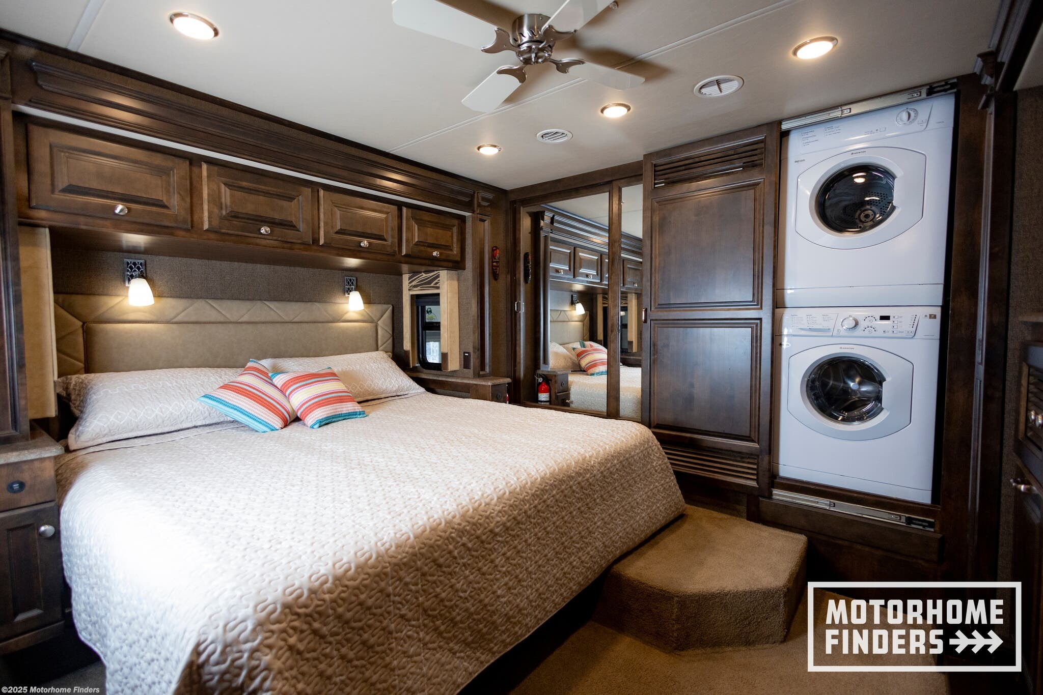 This coach has been meticulously cared for, stored indoors in a climate-controlled garage, and the exterior is hand-waxed—a level of care that keeps the paint shining and the surfaces properly preserved. All scheduled maintenance has been fully completed, and it’s ready today for a trip to Florida or anywhere you want to go. The seller is also including the next round of service filters and maintenance items, giving the next owner peace of mind and immediate savings.