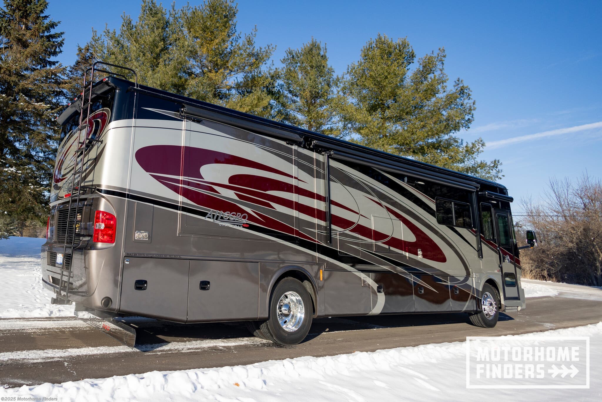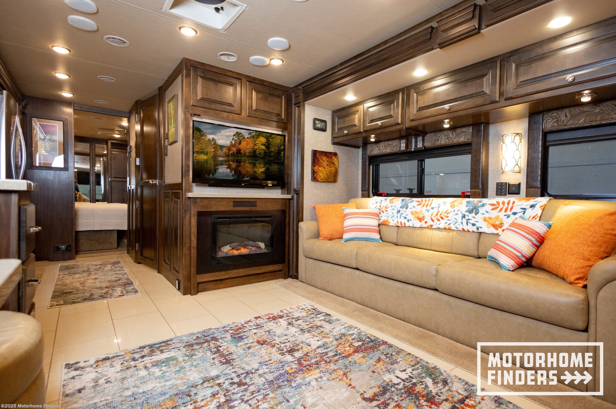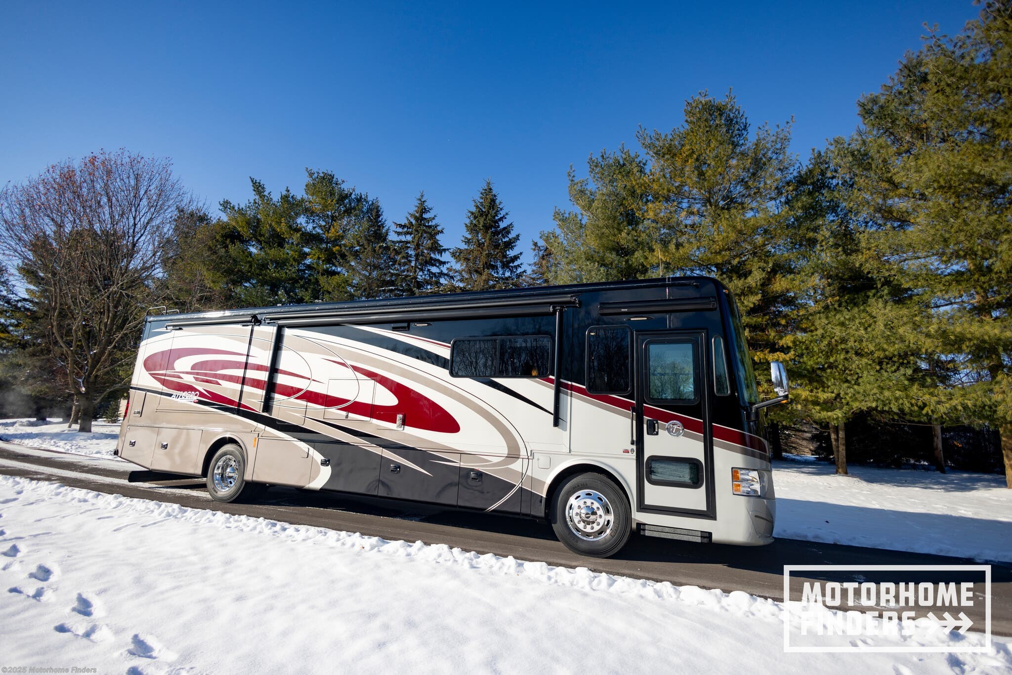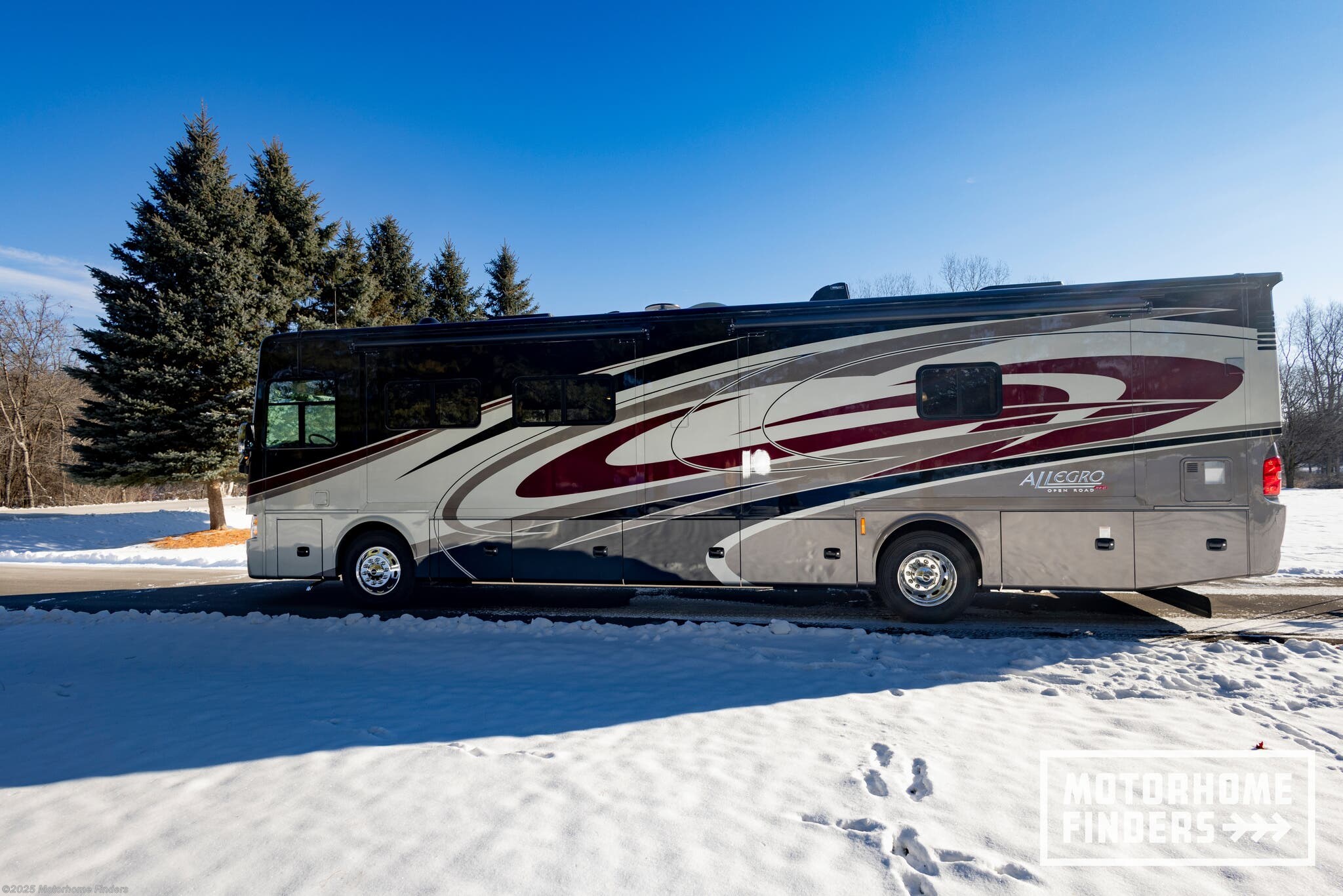 This 2017 Allegro RED 37PA delivers the perfect blend of Tiffin luxury, dependable Freightliner diesel performance, and residential comfort throughout its spacious quad-slide layout. Beautifully finished in Sunlit Sand full-body paint with Mocha cabinetry and Cocoa décor, this coach has premium upgrades throughout: residential refrigerator, fireplace, stacked Splendide washer/dryer, King memory-foam bed, navigation, and more.